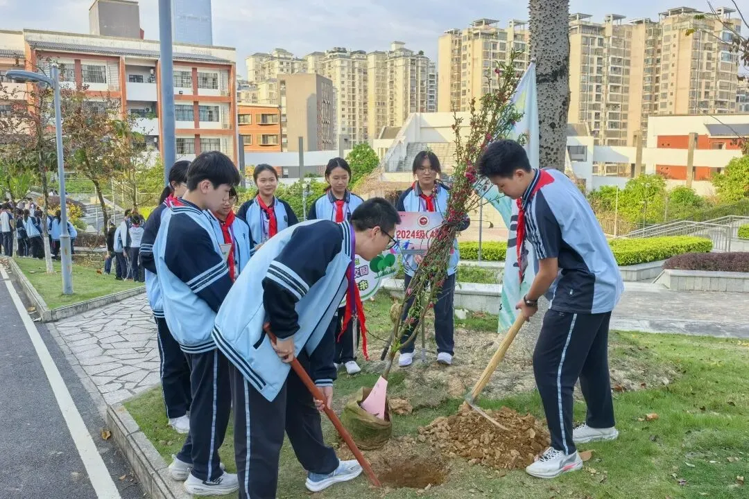 十年树木,百年树人。习近平总书记强调:“绿水青山就是金山银山。”本次植树活动,是南宁三中初中部青秀校区深化生态文明理念、落实五育并举、推进立德树人根本任务的生动实践,更是将劳动教育、责任教育、理想教育、生命教育融入育人全过程的有力举措。愿每一位南三青秀学子在草木荣枯中感知生命,在躬身实践中学会担当,在同心共育中锤炼品格,成长为有理想、敢担当、能吃苦、肯奋斗、爱自然、有情怀的新时代好少年,以青春之我、奋斗之我,笃行不怠向未来。