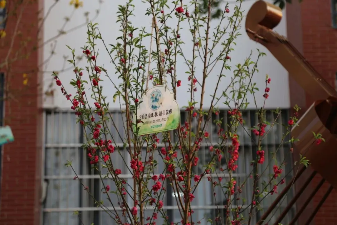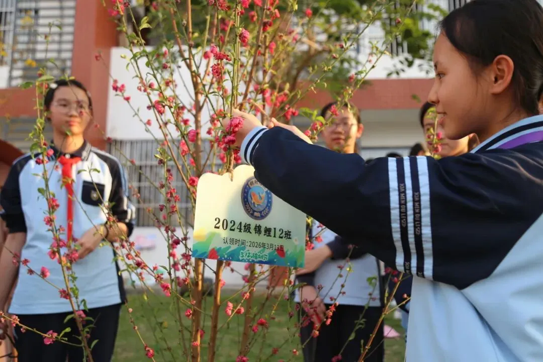 新苗扎根沃土,各班同学郑重悬挂班级认养牌,许下守护绿意的承诺。一方铭牌,是责任的注脚,是成长的印记,更寄托着三中学子向阳而生、笃行不怠的信念。一树一成长,一牌一初心。未来的日子里,棵棵新绿将与学子共历风雨、共沐阳光,见证青春拔节生长,让生态意识、责任担当、集体观念在心中悄然生根。