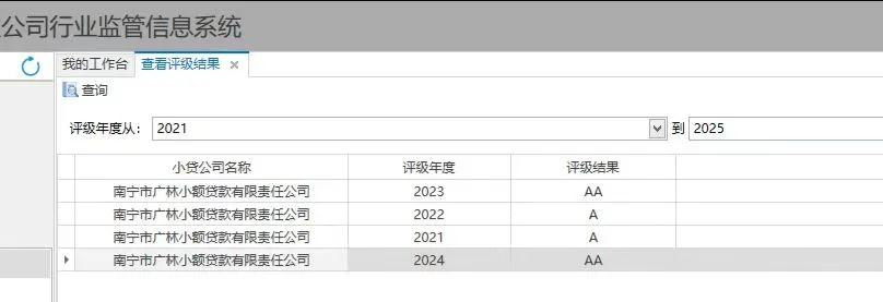 近日,自治区地方金融管理局公布2024年度广西小额贷款公司考核评价结果,南宁市广林小额贷款有限责任公司(以下简称广林小贷公司)获评“AA级”监管评级。这是广林小贷公司继2023年首次获评“AA级”后,第二次获评“AA级”监管评级。