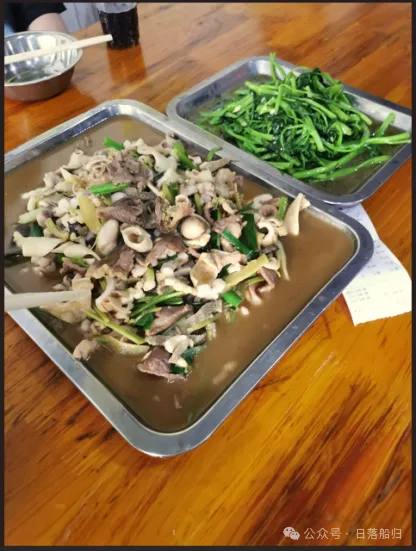 晚上友人请我们去吃爆炒生料,这是一个在小区里的大排档,人很多,没有空调,只有电风扇,整个空间都热火朝天。我们很幸运,找到了座位。