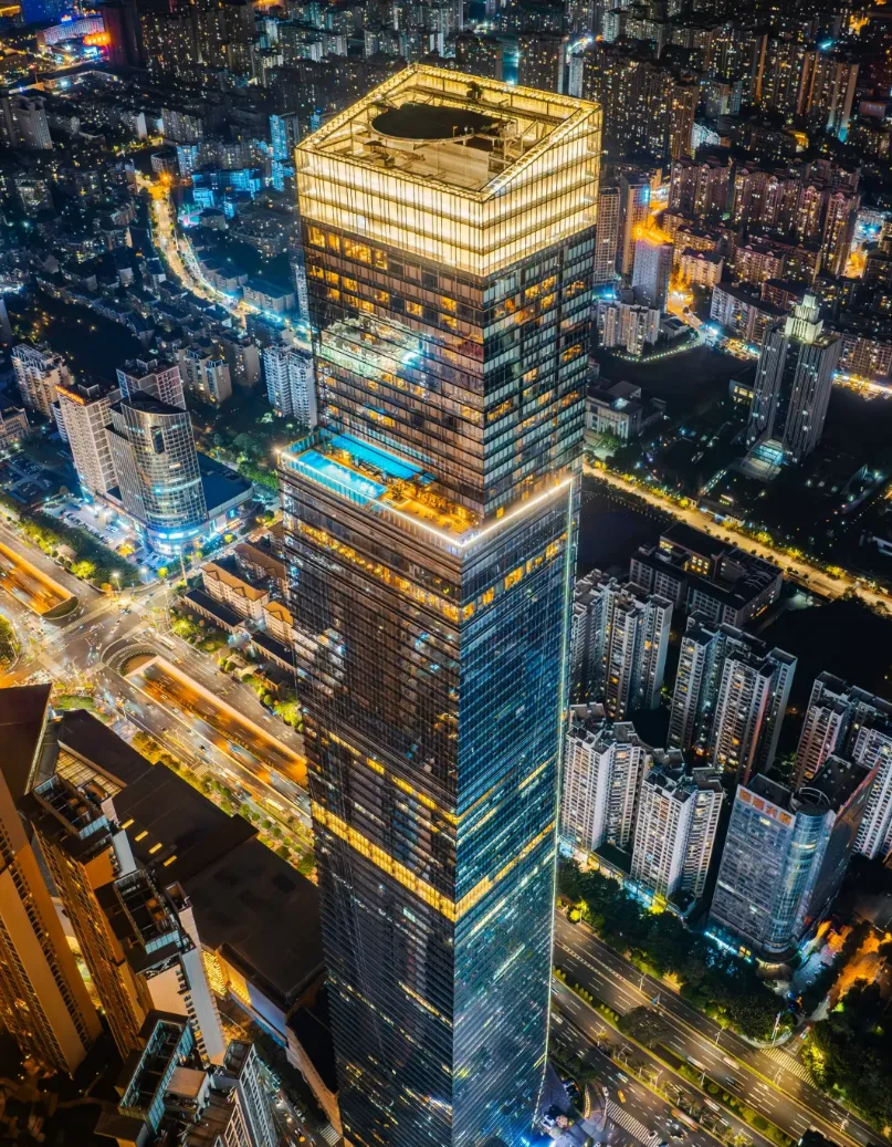东盟商务区的“春笋楼”线条利索,蓝小时刻抬头就好看。