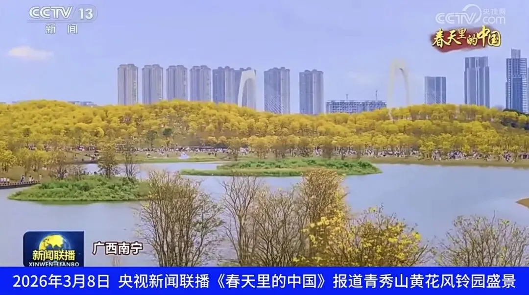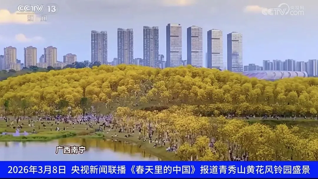四季大美皆春色,邕城无处不飞花。花海南宁多次登上新闻联播,如今春日胜景更是火爆出圈,八方游客慕名而来,满城繁花更增添了几分热闹的春意。