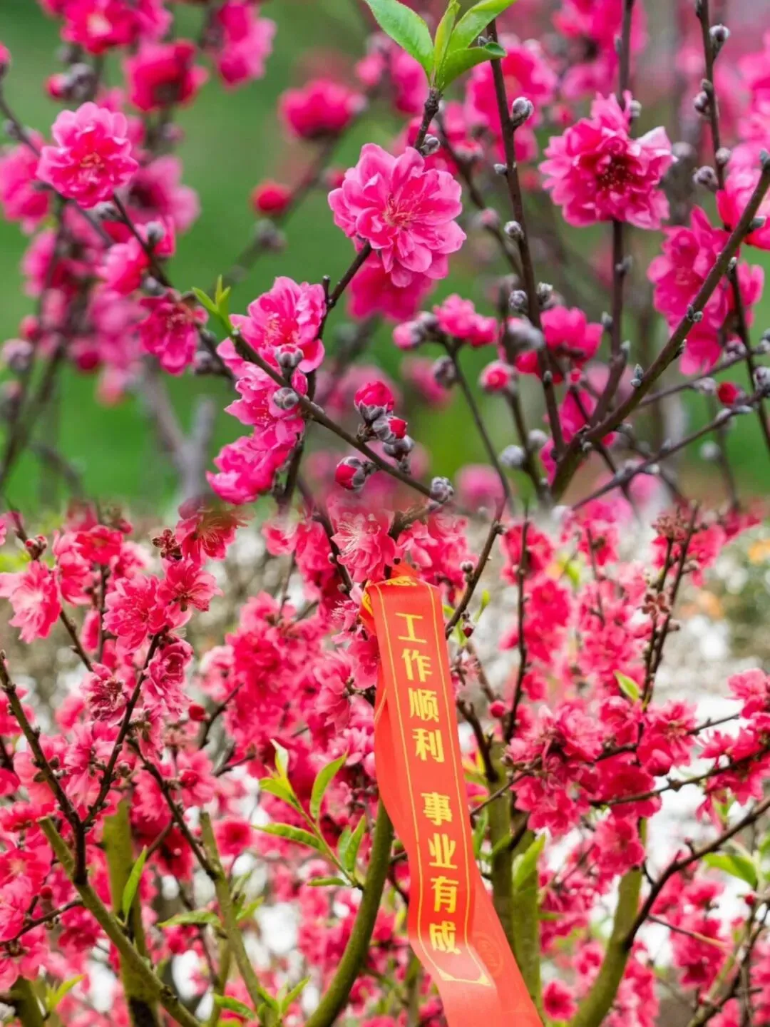 粉樱花神,是春日里最温柔的少女,微风甜甜,粉色的花瓣轻轻舞动,不温不火,不急不躁,像在诉说情窦初开的满腹心事,又像在倾吐无尽的绵绵相思,再粗糙的汉子,也见花犹怜,忍不住驻足倾听,凝思久望,这份美好的情意,是春天最浪漫的爱恋。“樱花树下站谁都美,我的爱给谁都热烈。”不妨带上心怡的她,在樱花树下来一场深情的告白吧! 桃仙花神。“桃花嫣然出篱笑,似开未开最有情。”桃花坞嫣红一片,风姿绰约,蜂蝶纷飞,桃花枝头春意闹。“桃之夭夭,灼灼其华”,古人以桃花喻美人,也寄寓吉祥与幸福。花树下,不少虔诚许愿的少男少女,许个桃花运,许来年如桃花般灵动惊艳、明媚灿烂。