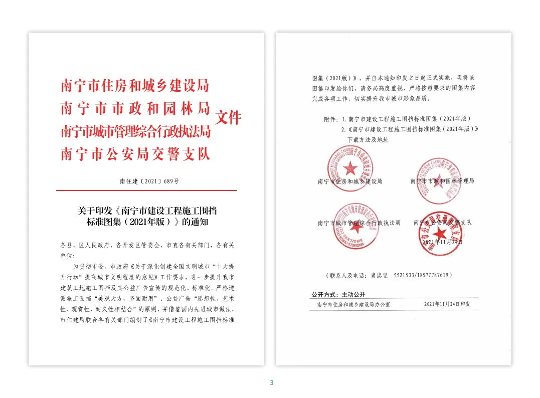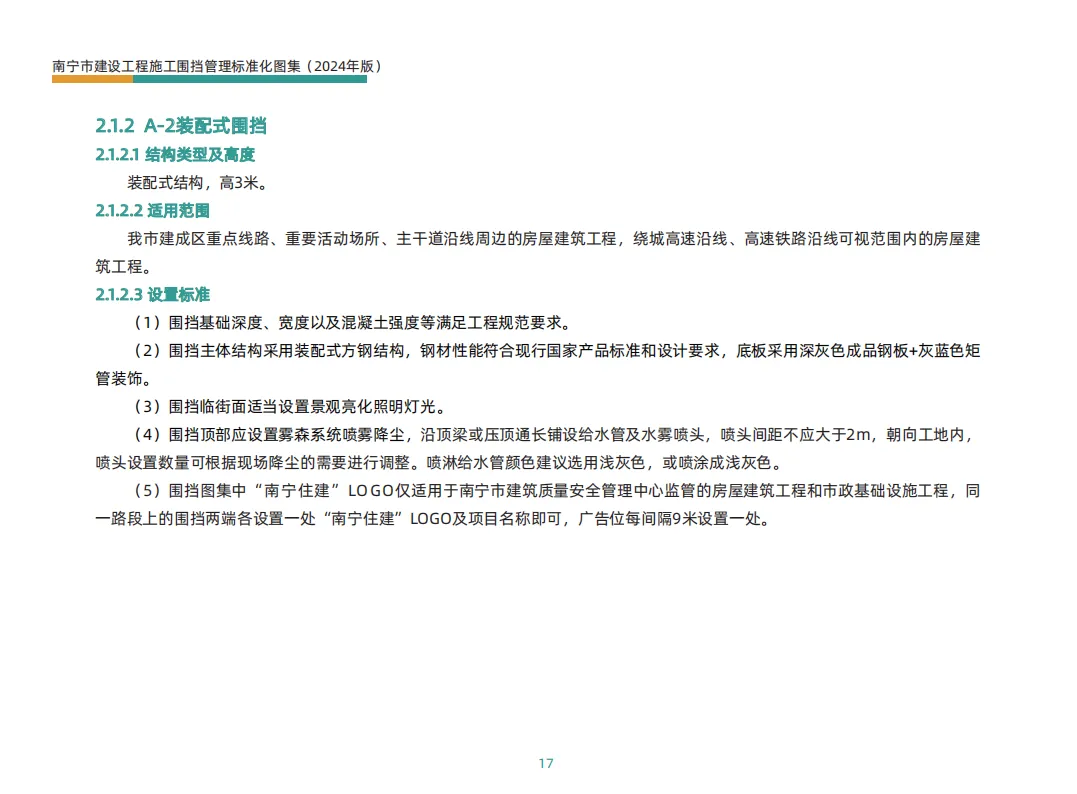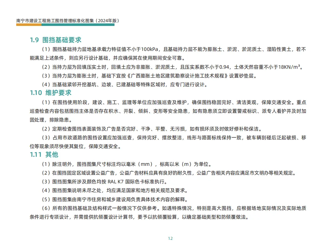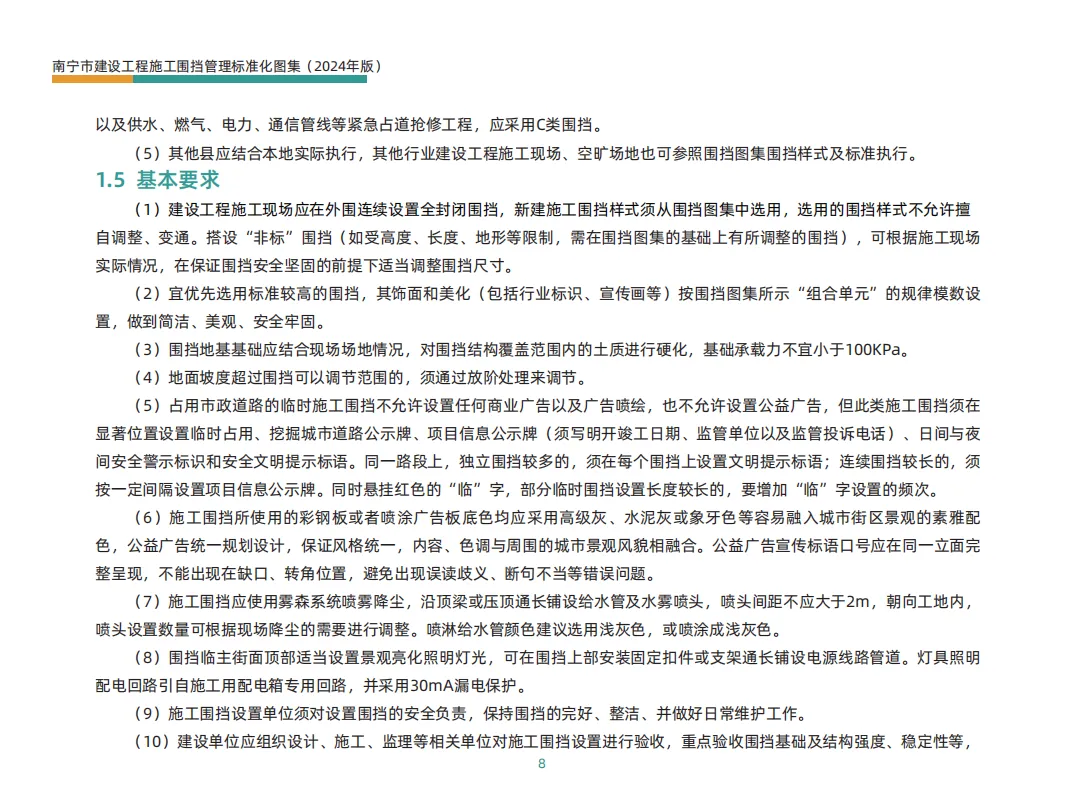 为了进一步改善城市形象,告别以往围挡杂乱无章、广告五花八门的乱象,南宁市住建局正式发布了《南宁市建设工程施工围挡管理标准化图集(2024年版)》(以下简称《围挡图集》)。