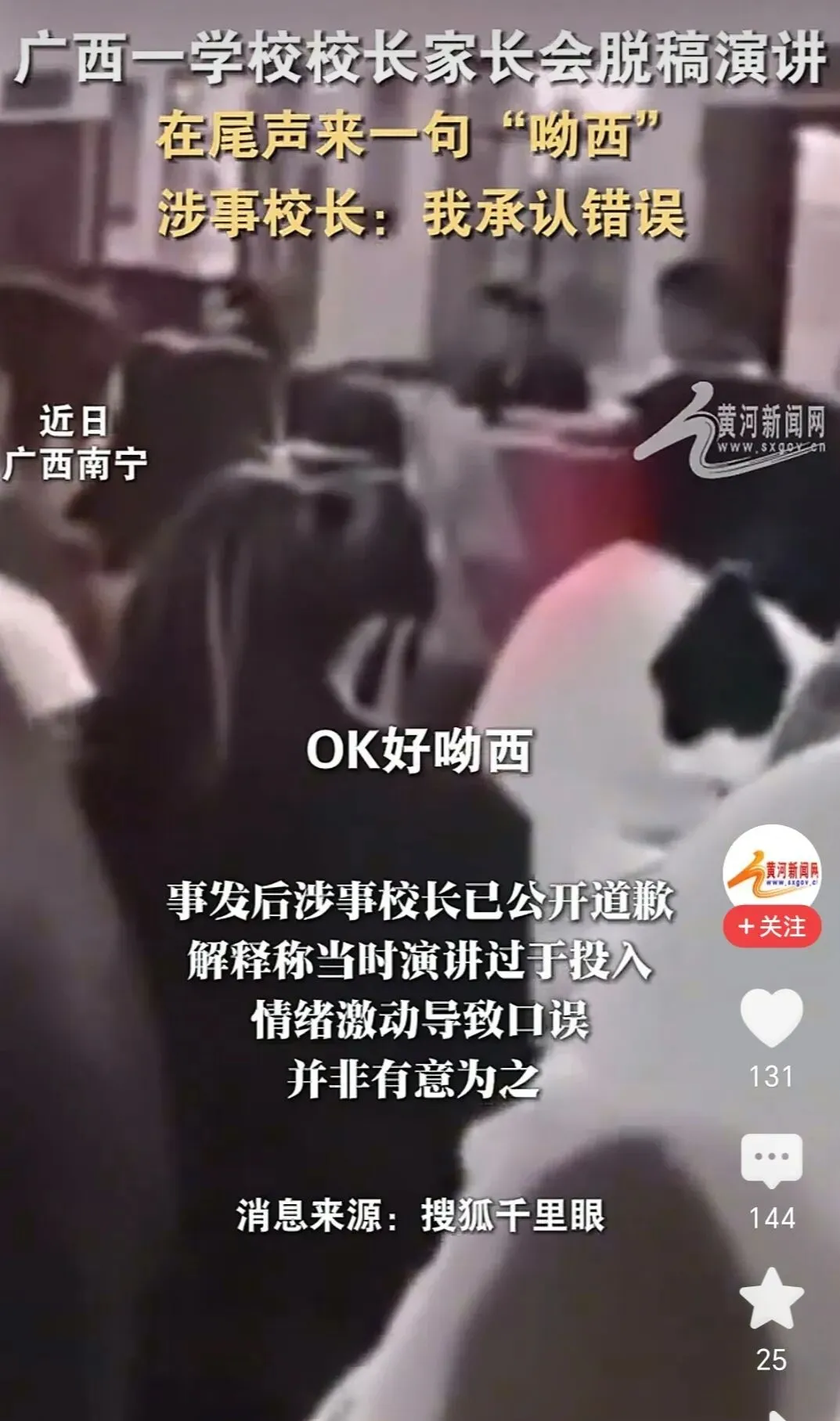- 校长公开道歉,称“演讲投入、一时口误”;