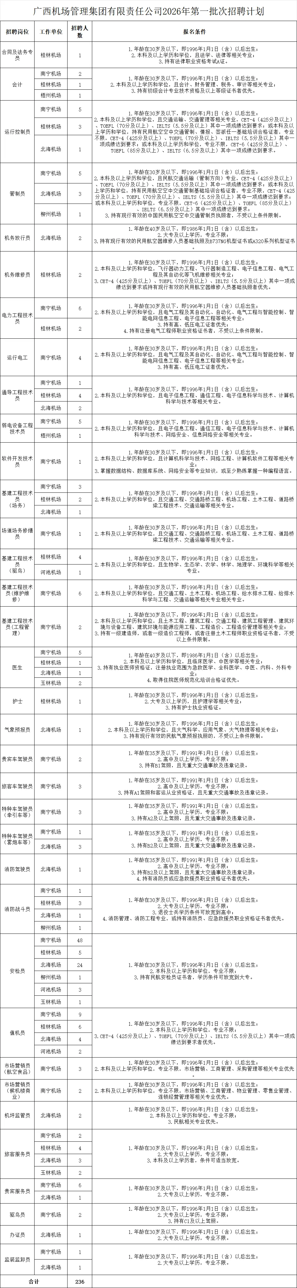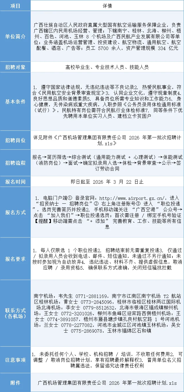 >机场国企(南宁),招236名工作人员!