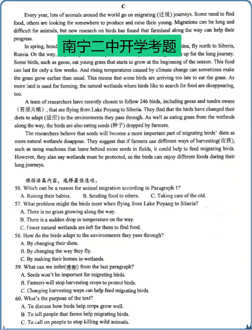 咱们就拿这次南宁二中(新民)九年级开学考的压轴阅读C篇为例,带大家实战演练一下。