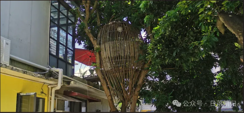 在小区里散步,看到一个简易版的树屋。仔细看,在晒台和树屋之间铺了一块板,可以走进树屋,看样子能够坐在里面看书,只是这个空间,腿可能无法伸直。称为树屋有点牵强,可能称为树笼更贴切。只能说,这个主人的想法是好的,是个热爱生活的人。