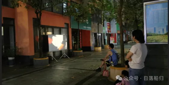 晚上在住所附近散步,居然看到有人在放露天电影,虽然是迷你银幕,但也已足够。很不错的体验,在夏夜里乘凉的人们需要这样的休闲方式,想来就来,想走就走,来去自由。