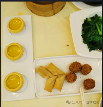 蒜香虾春卷拼炸鲮鱼球这个春卷和上海春卷在外形上很像,咬下去酥脆。内馅的虾肉鲜嫩,蒜香与虾肉的鲜美融合得恰到好处,合我的口味。