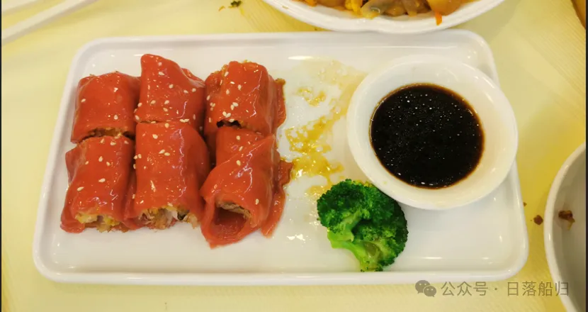 红米鲜虾肠的红米外皮有韧性,口感细腻,能透出红米的香气。中间的酥脆层咬下去很干脆。里面的虾肉好吃。红米、酥层和虾肉相互融合,口感丰富。