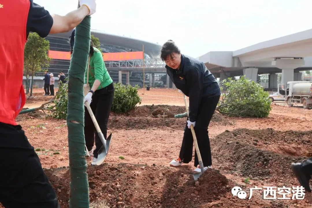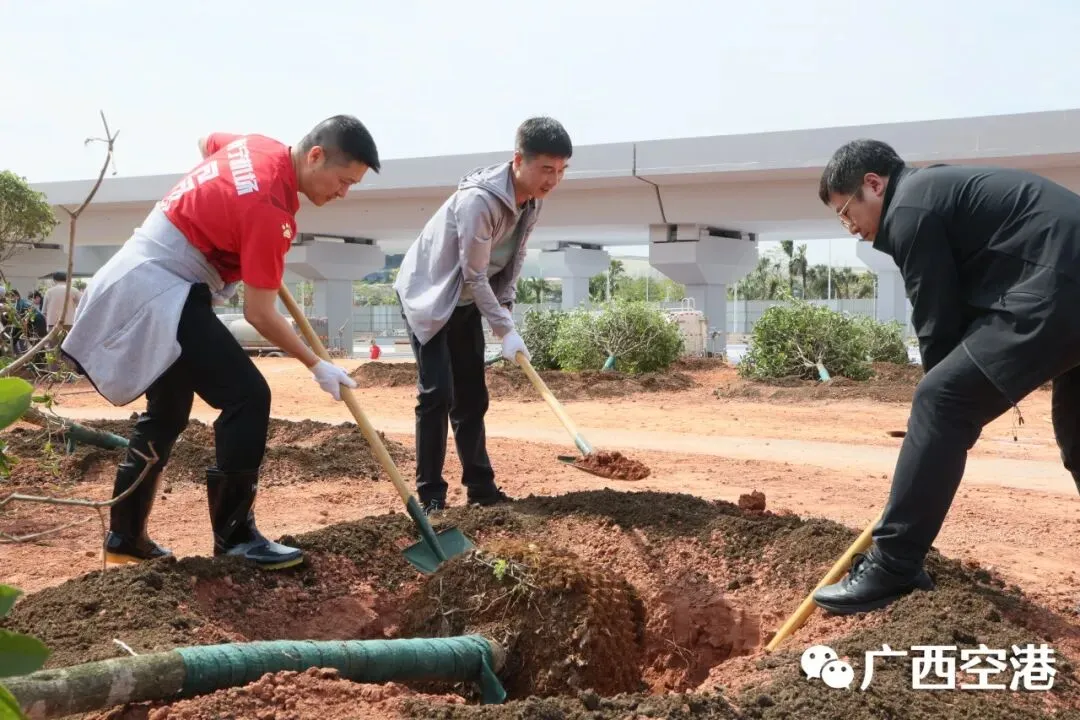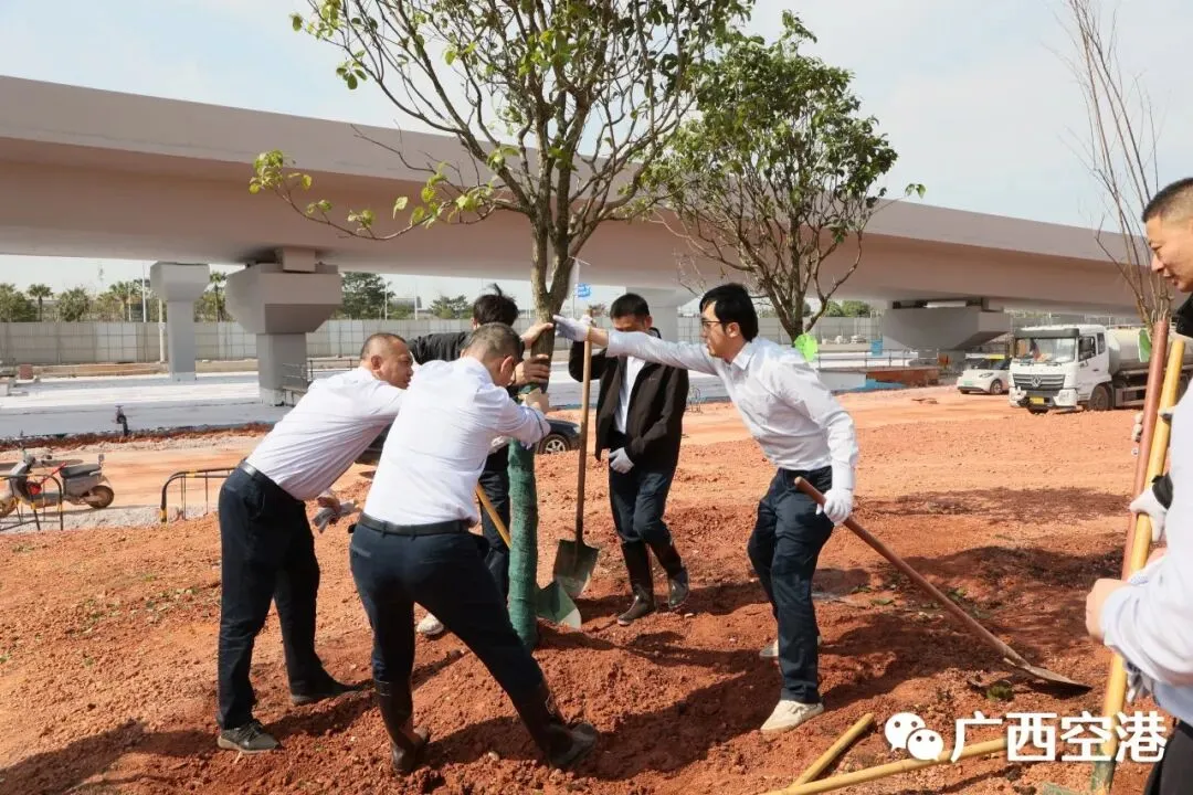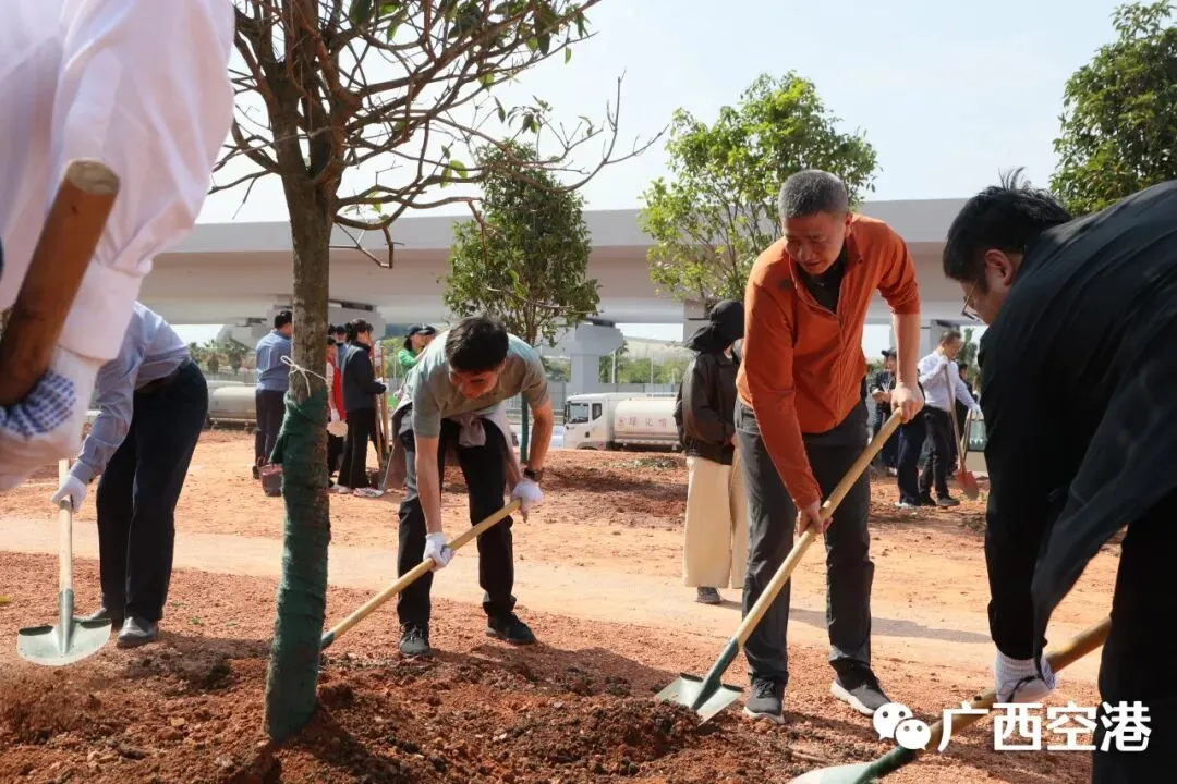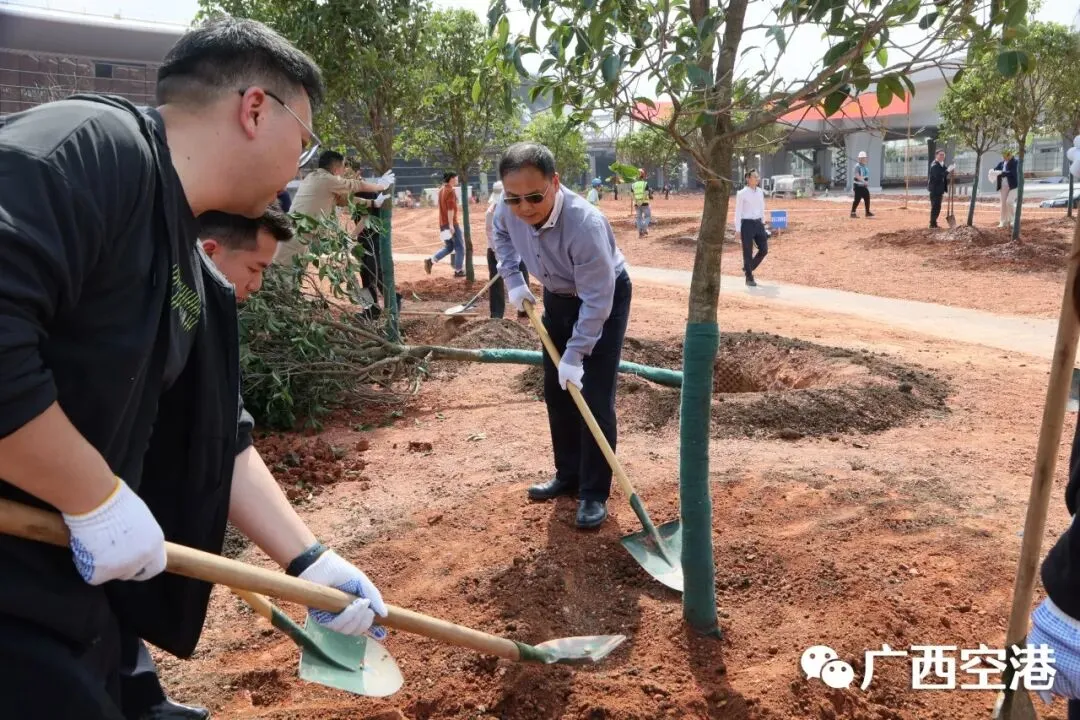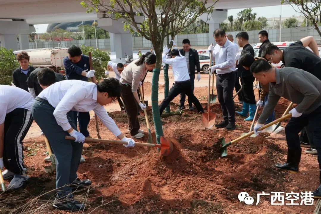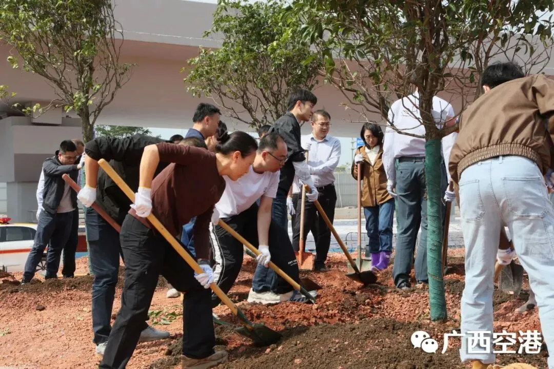 3月12日下午,南宁机场在T3航站区组织开展2026年义务植树活动。集团公司领导胡俊华、孙辉、李宏斌,民航广西监管局领导朱姝颖,南宁机场领导罗浩、祁振兴、龙霞、苏文辉参加活动。