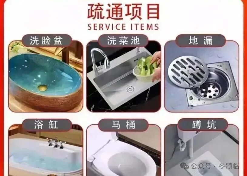 疏通浴缸面盆:疏通各种型号浴缸、面盆,包括 V 型弯、S 型弯管道。