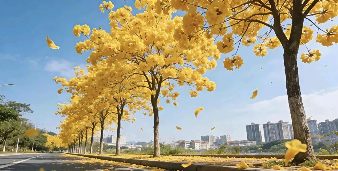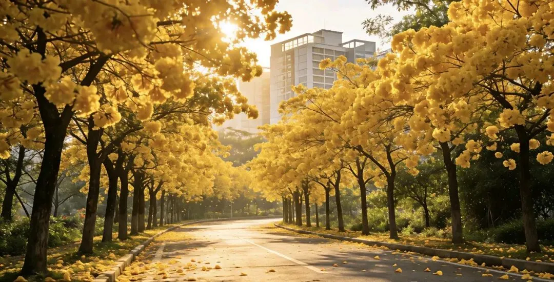 满城黄花风铃木肆意绽放,将整座城市晕染成温柔的金黄色,随手一拍都是治愈系大片。