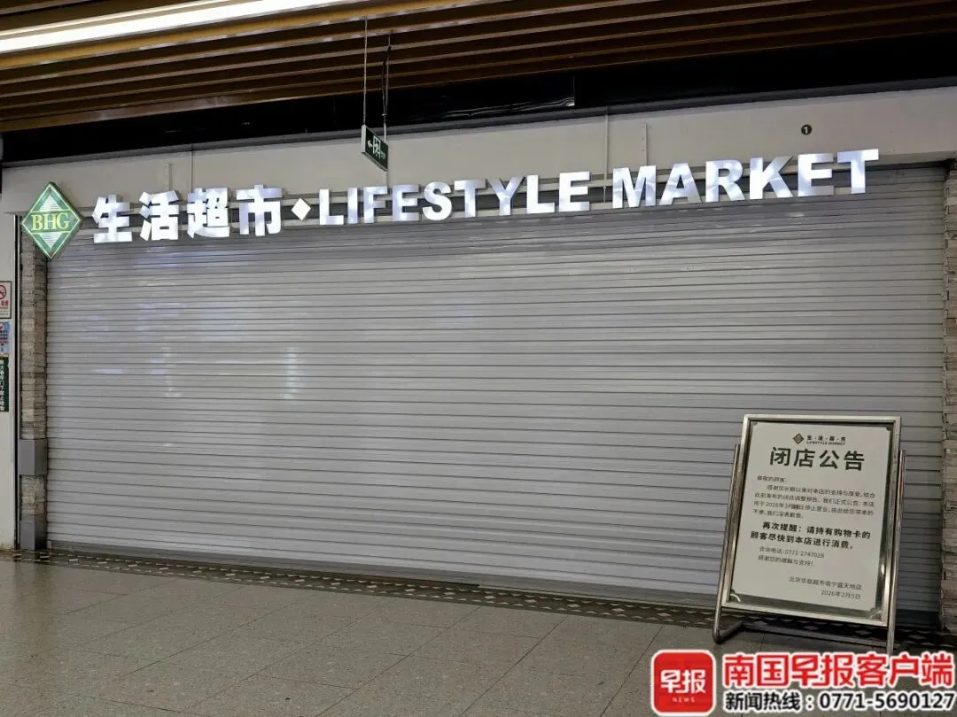 12日下午4时许,广西云-南国早报记者来到南宁市东盟盛天地购物中心B1层,在华联超市入口处看到一则2月5日发布的闭店公告,称该店将于2026年3月13日停止营业,提醒持有购物卡的顾客尽快到店进行消费。