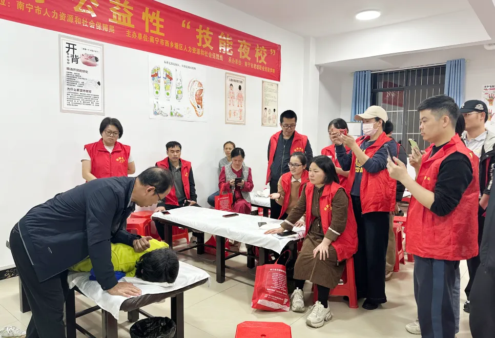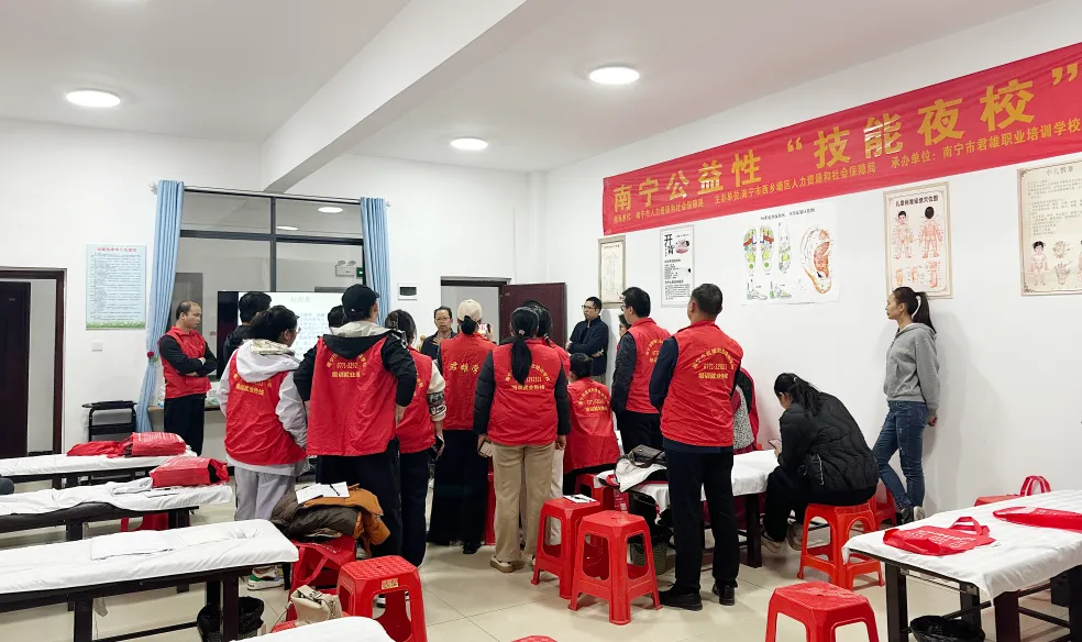 作为本次技能夜校的承办方,南宁市君雄职业培训学校高度重视此次培训工作,严格按照市、区人社局的指导要求,结合当下群众对肩颈保健的迫切需求和保健按摩行业的发展趋势,精心筹备、周密部署,确保培训工作有序开展、取得实效。