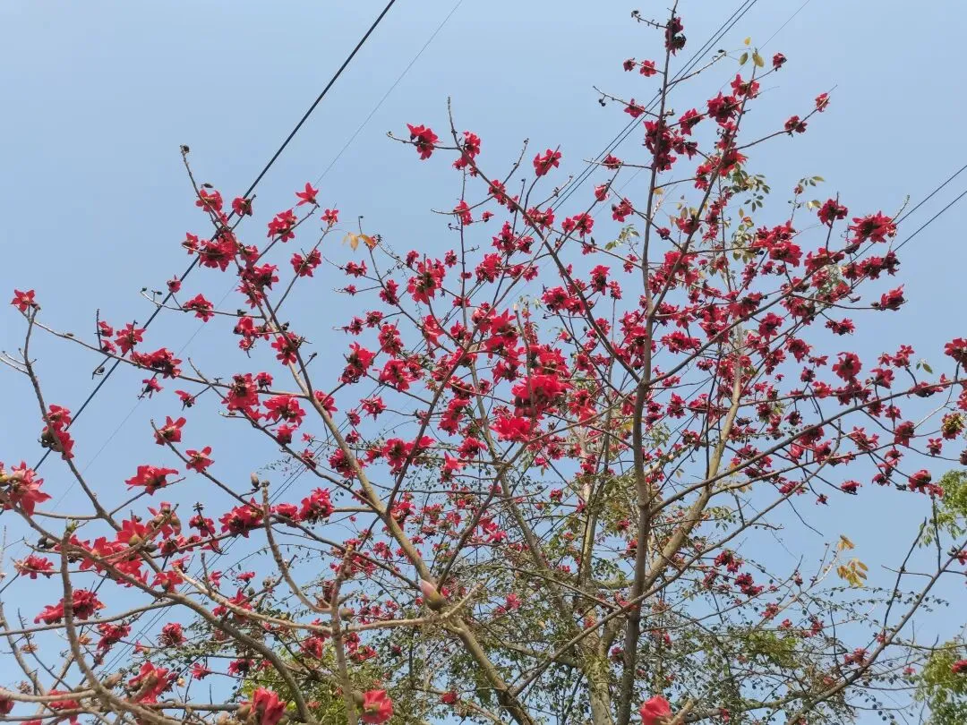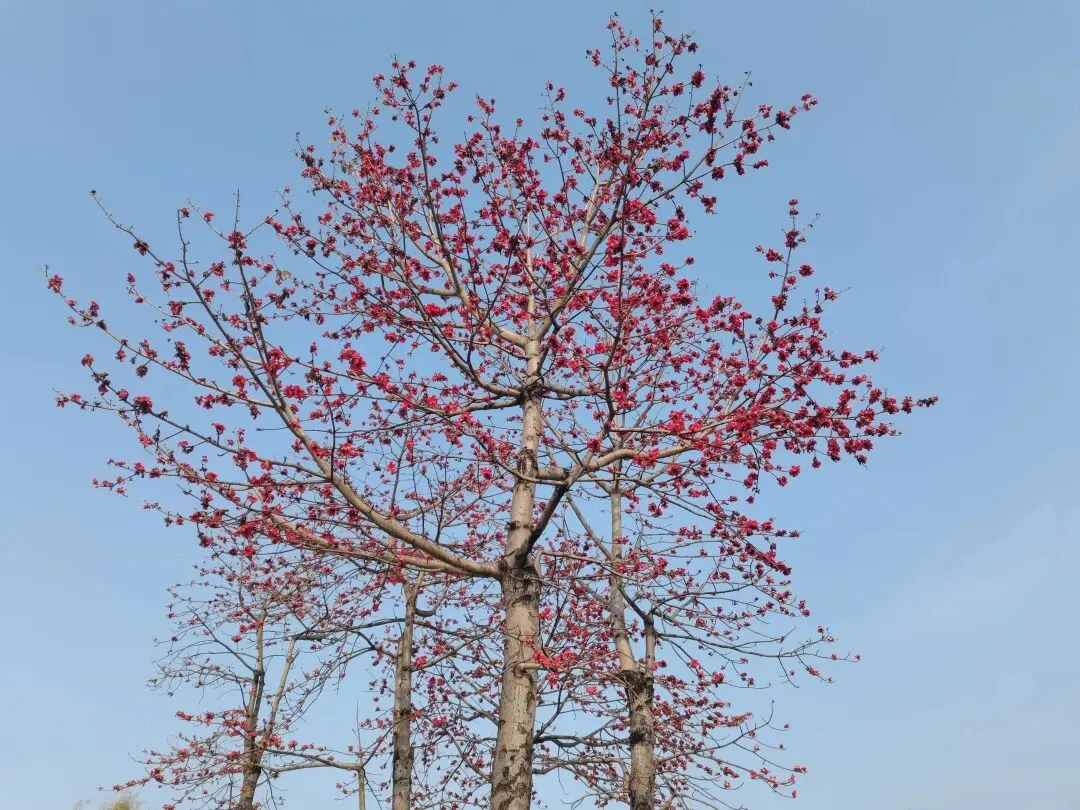 木棉花又被称为“英雄花”,木棉花期和黄花风铃木一样,都是先花后叶,花期同样短暂,满树绚烂不过十余日。