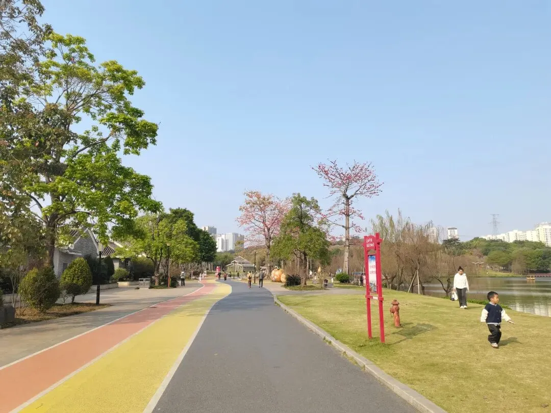 可能是一家人同行的缘故,今天的心情十分美丽。十分钟后,到达江南公园停车场。