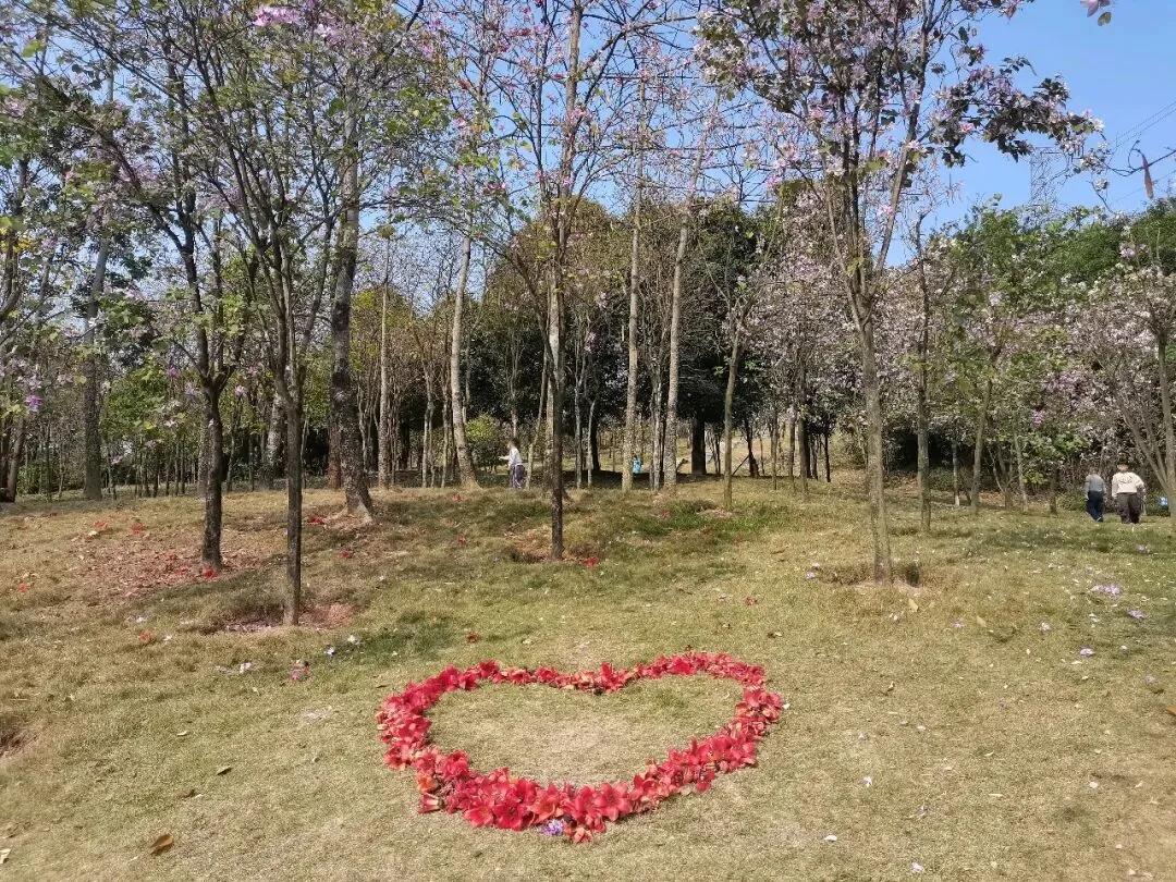 而草地上那圈用落花拼成的心形花环,化作了温柔的告白,寓意着珍惜与热爱。