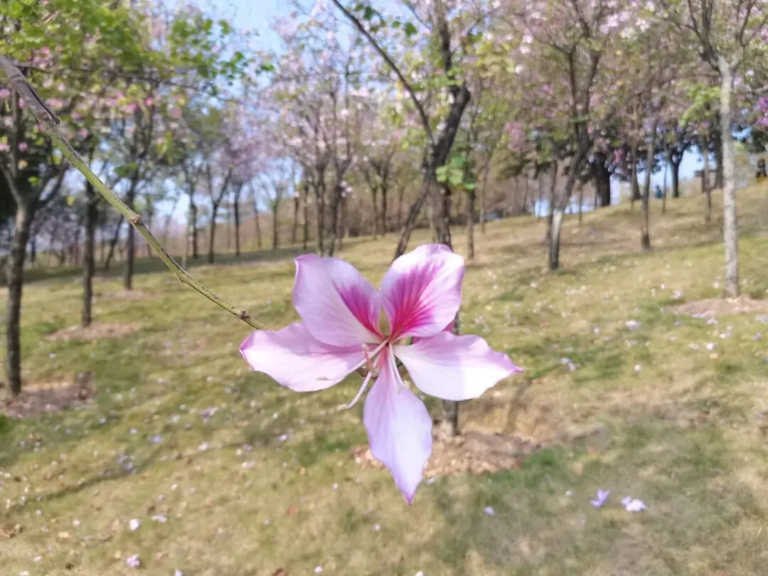 宫粉羊蹄甲是比较常见的,在南宁几乎全城开花,邕江两岸、道路两旁、各大小公园都能看到其身影,此时正值盛花期。