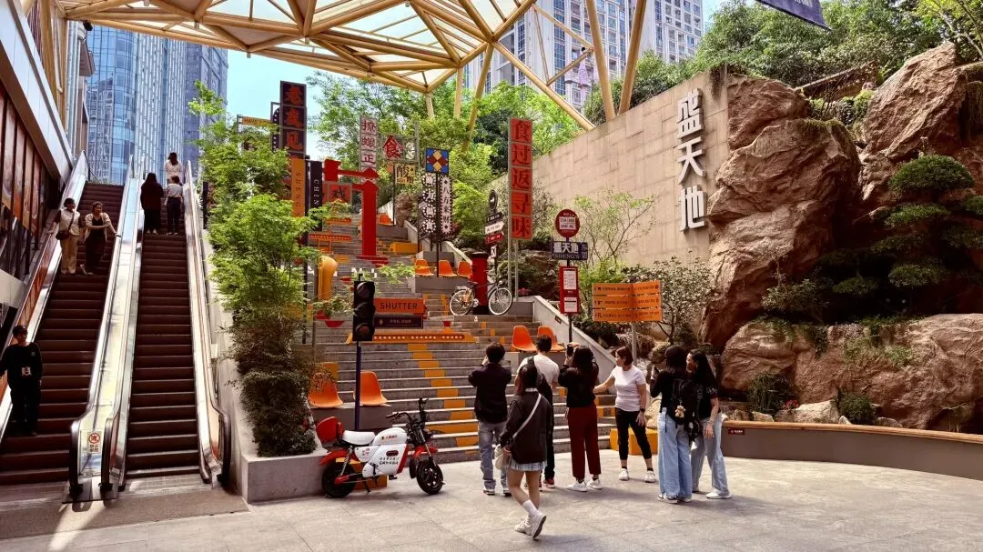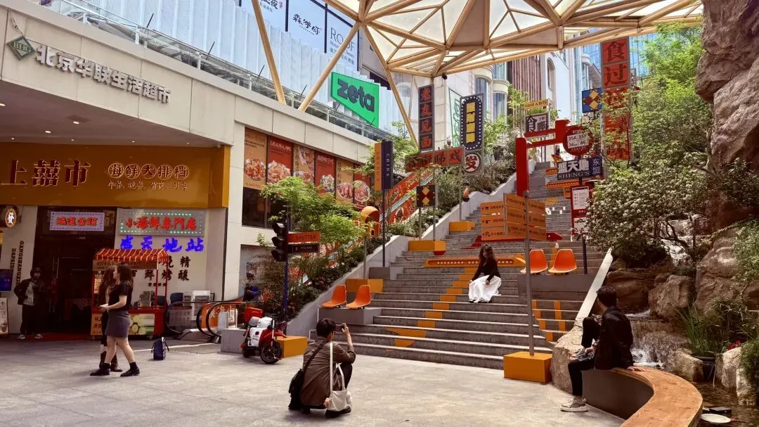 现在这里这个楼梯,它出现的时间够久了吧?昨天是周五,也不是周末吧?它就是这样,随时都有人在边上打卡拍照。