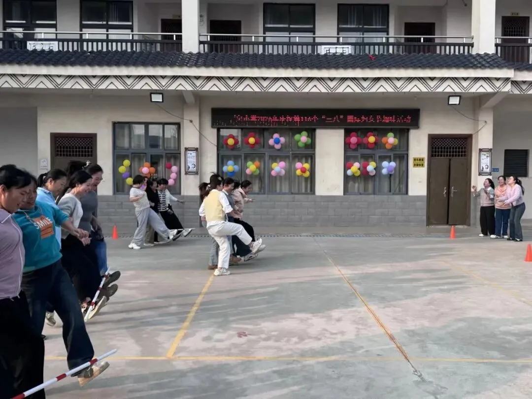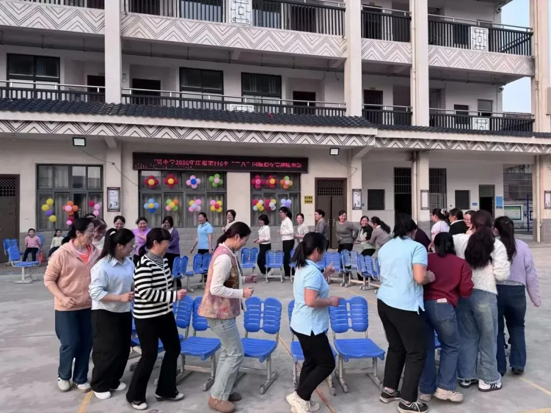 那舅小学以"最美教师 快乐三八"为主题,在操场举行教职工趣味活动。校长李翠娟发表节日致辞,向辛勤耕耘的女教职工致以诚挚祝福,鼓励大家放松身心、展现风采。