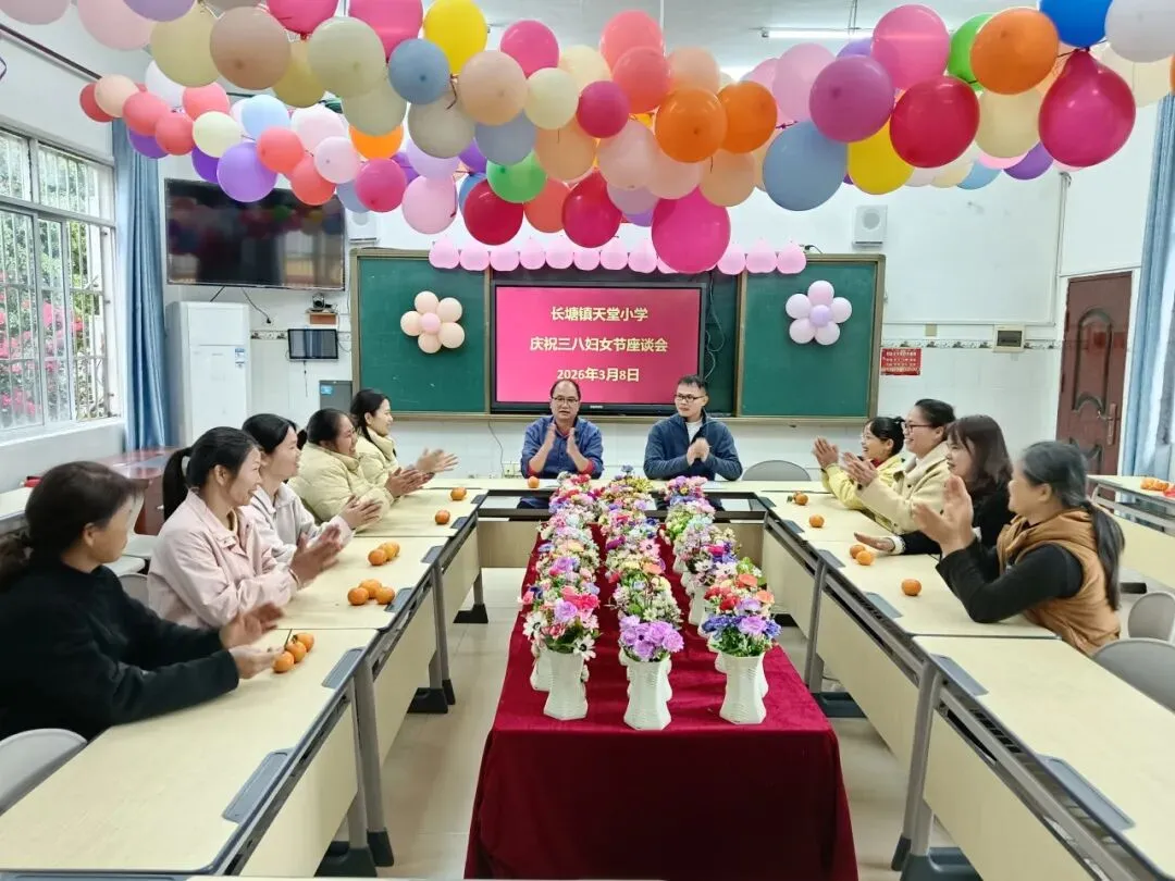 天堂小学则以座谈会与踏青赏花的形式,为女教职工送上节日关怀。