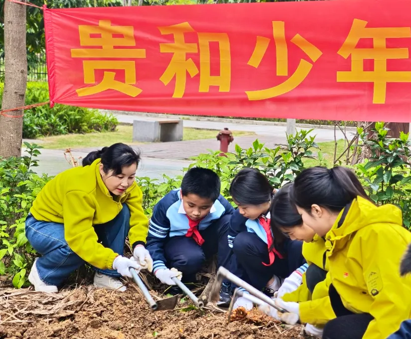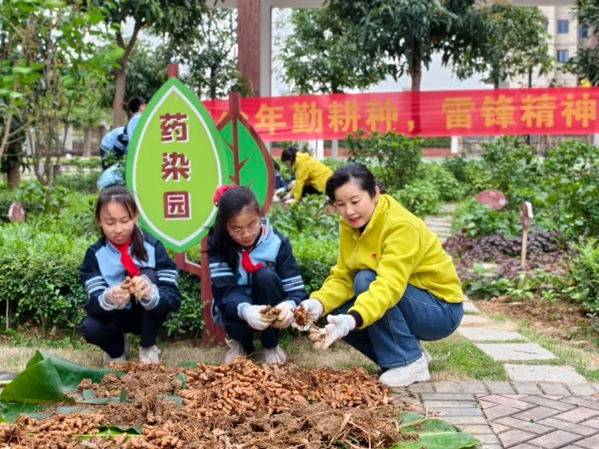 与此同时,校园内的小雷锋们也在如火如荼地开展中。贵和少年勤耕种,雷锋精神植心中。在学校药染园里,同学们躬身劳作、细心耕耘,用汗水浇灌绿意,以劳动践行美德。大家在播种与照料中体会奉献与担当,让雷锋精神在劳动实践中生根发芽代代相传。