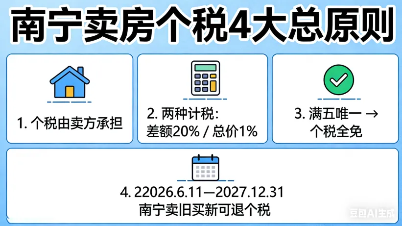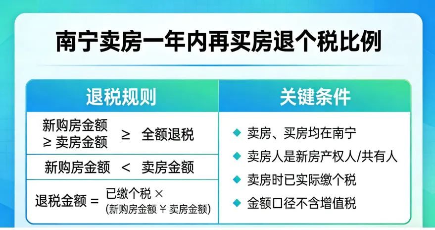 4. 换房有补贴:如果你在2026年1月1日到2027年12月31日期间,在南宁卖了房又买了房,符合条件的话,之前交的个税可以退回来一部分甚至全部。