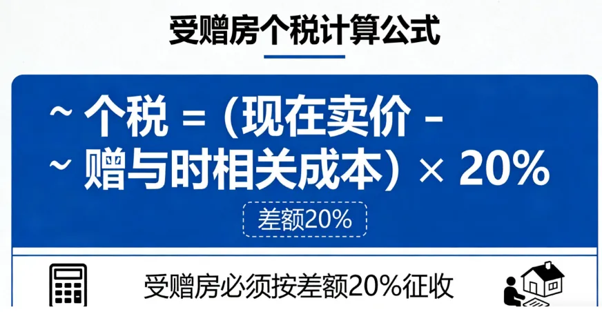 2. 受赠房没发票 ≠ 按1%交:受赠房是特例,哪怕查不到原值,也得按差价20%交。