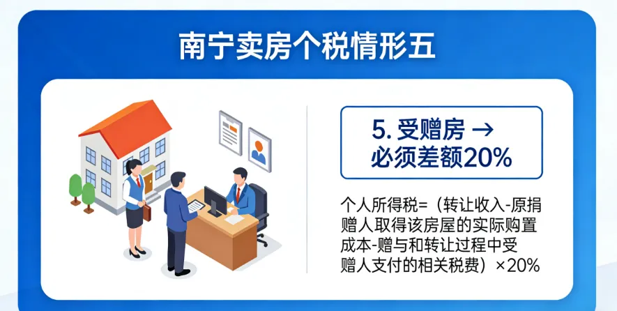 简单说:既然搞不清你当年花多少钱买的,税务局就直接按你现在卖房总价的1%来收税。这是南宁最常见的情况。这里要注意,受赠得来的房子、法院拍卖的房子,不按这个算。