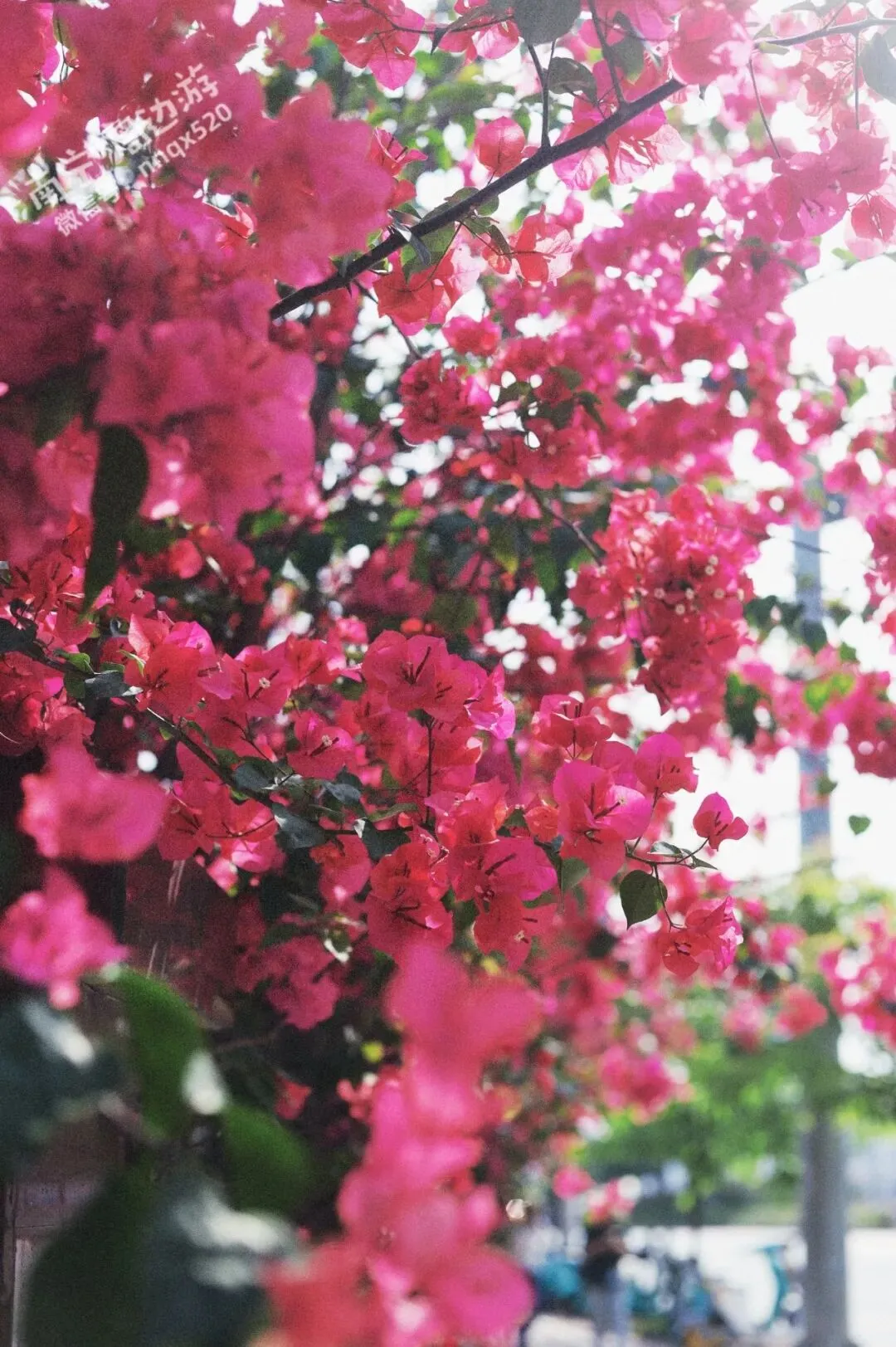 就在十七中门口,沿途三角梅盛开,远远看过去像一片粉红色的云,成了一幅绝美春景。“美比牡丹艳若霓,夭胜桃花灿似霞”,用来形容这片花海再合适不过,错过这波盛花期,可就要再等许久啦!