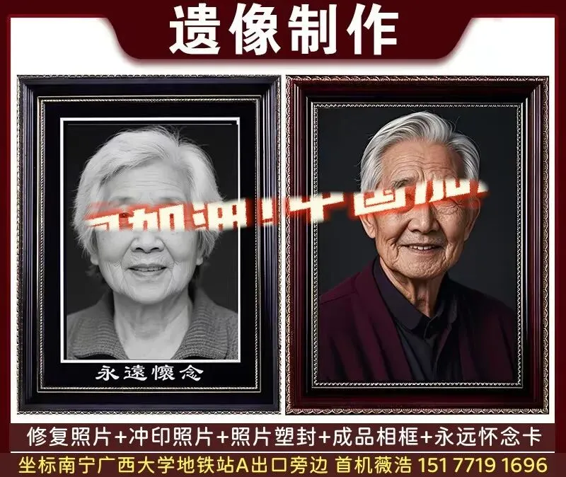 #南宁哪里可以提供修复照片做成遗像的服务?#南宁遗照相框制作什么尺寸好?#遗像制作多少钱怎么收费?南宁遗像照片制作遗照相框制作,可以找这家云影工作室,当天可出片。家里有老人去世还没遗像怎么办?如果你正在为亲人的遗像制作犯愁,别担心,你只需要提供一张亲人的日常生活照片让云影工作人员制作即可。门店地址:南宁市西乡塘区明秀西路118号百汇华庭A座七楼云影工作室,就在广西大学地铁站A出口旁边。(想了解的朋友建议先加工作人员薇浩询问清楚,再进行制作).薇浩 151 7719 1696关于制作遗像照片 制作遗照相框的费用:有几十元也有上百元。具体取决于需要提供的服务内容。比如是否需要修复照片,是否需要冲印打印照片,是否需要制作成品相框。#老照片修复#遗像的制作#老人遗照相框是多大?遗像相框做什么尺寸好?遗像的尺寸并没有硬性规定,主要是根据使用场合和当地习俗来。市面上这几个尺寸都有人做:八寸(内框规格15.3*20.5cm)、十寸(内框20.3*25.4cm)、A4纸尺寸(内框21*29.7cm)、十二寸(内框25.4*30.5cm)、14寸(内框25.4*35.5cm)、16寸(内框30.5*40.6cm)。通常10寸至14寸,这个范围内的尺寸比较常见,尤其是A4、12寸,这两个尺寸更是常见,尺寸适中,方便摆放和后续安置。还有一些小尺寸是用于制作墓碑铭牌,比如一寸和二寸三寸,是墓碑上面用的,不需要太大的尺寸。除了尺寸,这些细节也很重要