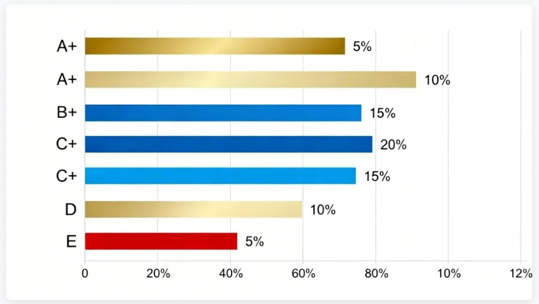 首先,A+是"排名比例"而非"固定分数"。只要排名进入前5%即可获得A+,与具体考多少分无关。