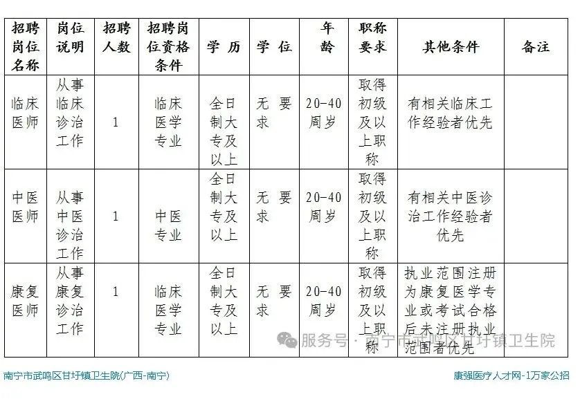 南宁市武鸣区甘圩镇卫生院2026年第二次公开招聘编外工作人员公告