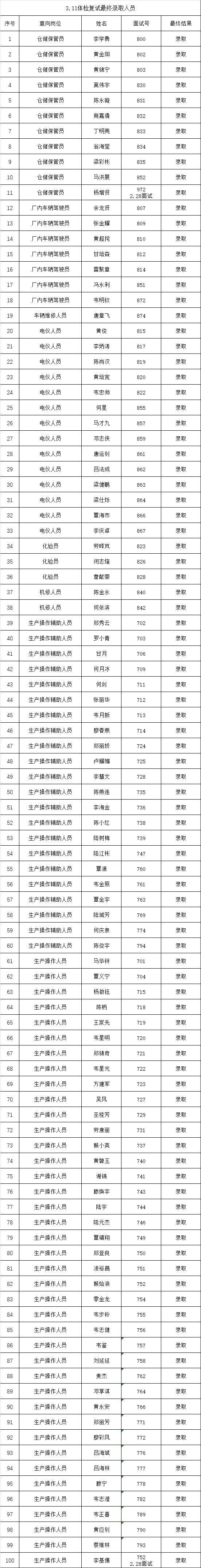经面试及体检,现将最终录取人员名单和入职安排予以通知。具体如下:一、最终录取名单