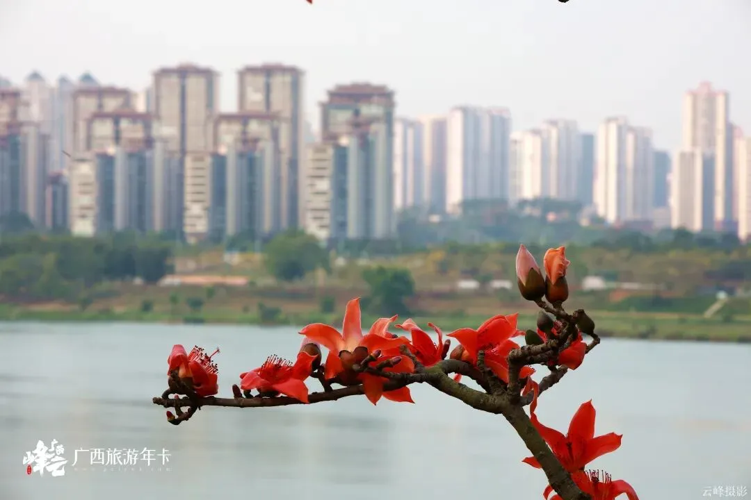 (木棉花因树形挺拔、花开鲜红如血、落时壮烈不屈,又承载着忠勇英雄的传说与气节,被称为英雄花。)