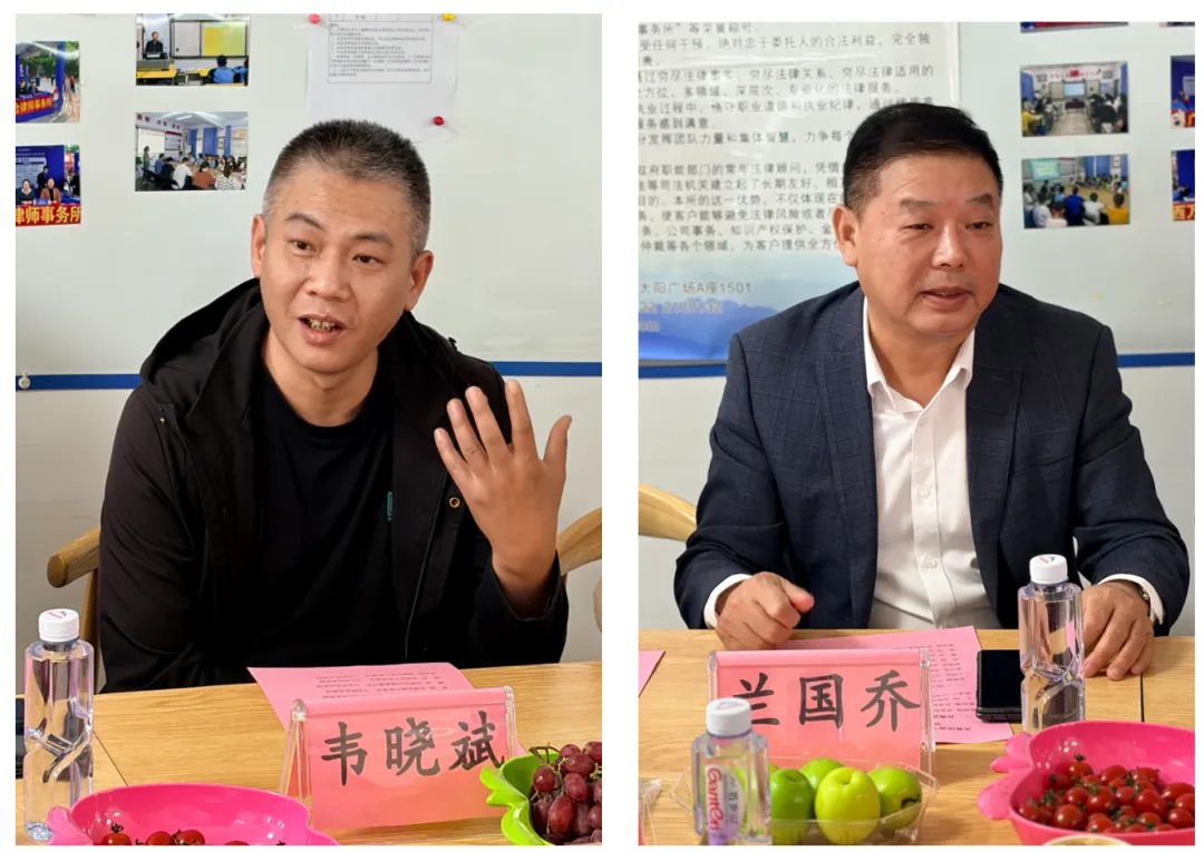 韦晓斌书记从党建引领的角度阐述了律师事务所在履行社会责任中的担当与使命,表示将发挥党组织的战斗堡垒作用和党员律师的先锋模范作用,全力支持并参与到团市委组织的各项普法及公益活动中。兰国乔执行主任则围绕律师事务所的专业优势和服务特色,就如何更好地配合团市委开展青少年普法、公益志愿活动等方面表达了积极意愿和设想。