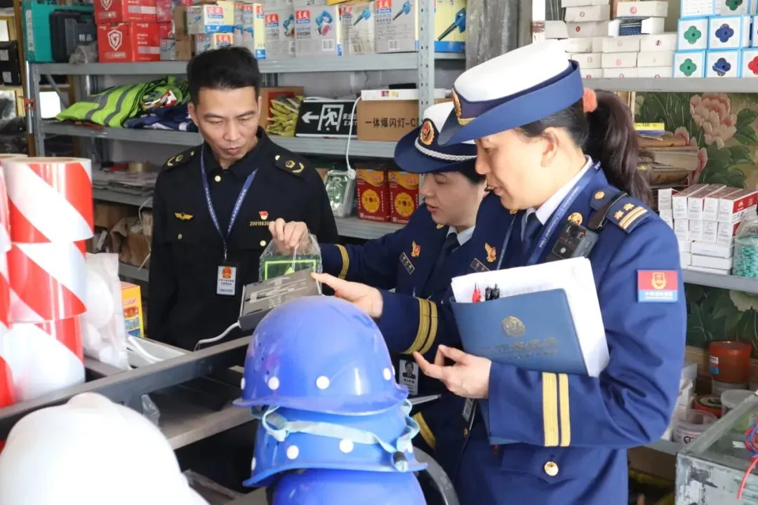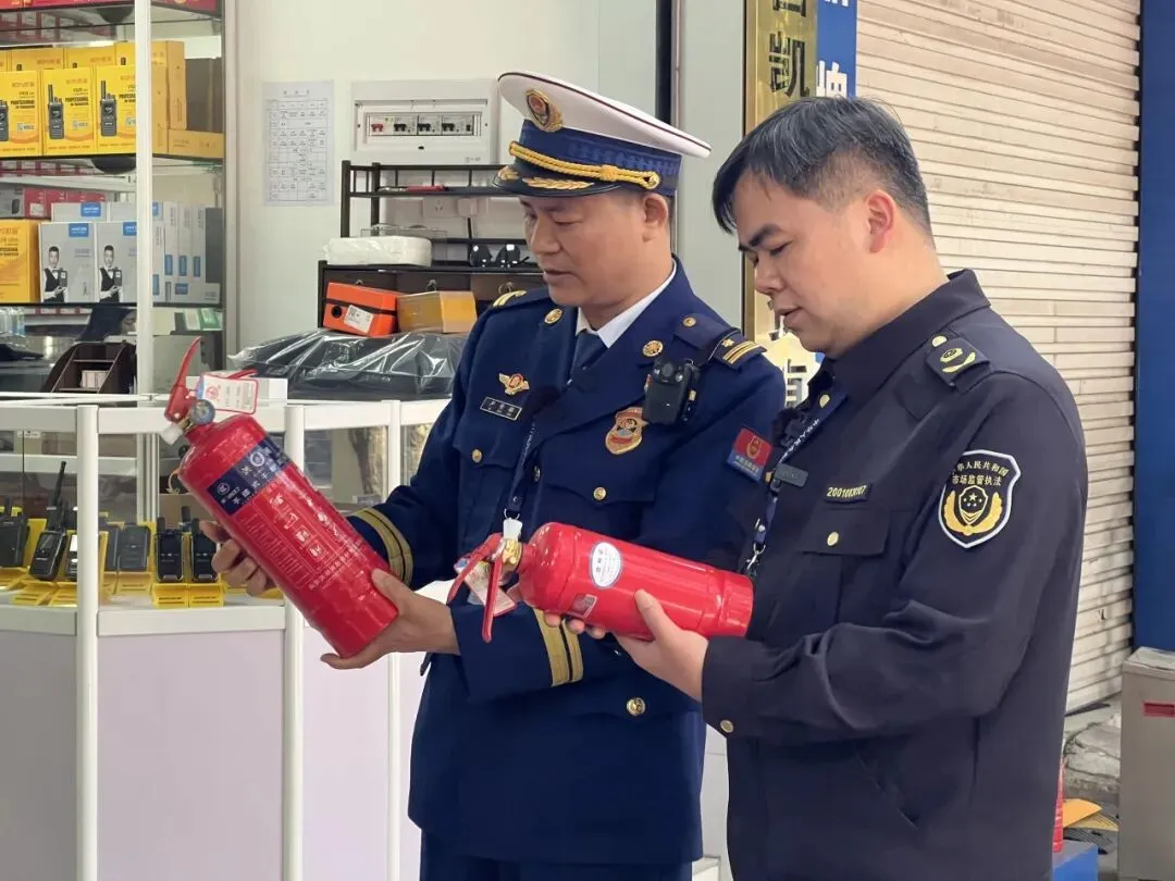 青秀区、兴宁区、上林县消防救援局联合市场监管局执法人员深入辖区消防产品销售门店及重点单位,对灭火器、应急照明、疏散指示标志、过滤式呼吸器等常用消防产品进行严格查验,重点核查产品3C认证、合格证书、外观标识及性能参数,严厉打击假冒伪劣、过期失效等违法行为。