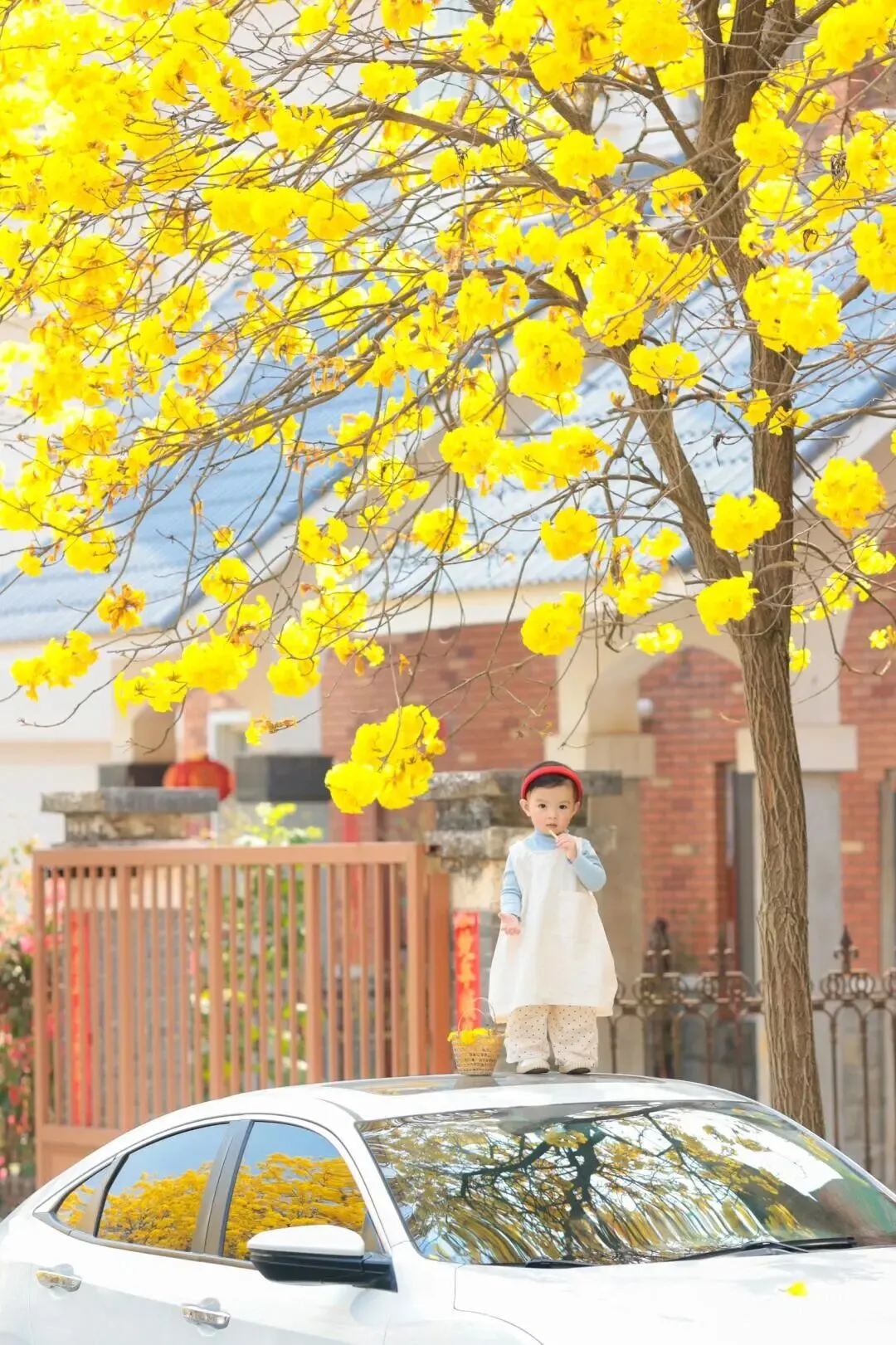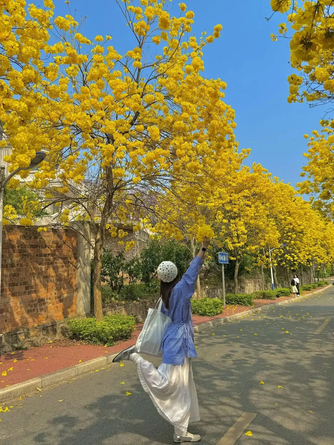 漫步在滨江别墅区里的小道里,像是踏入了一场金色的梦幻奇遇。黄花风铃木不仅是春日浪漫,更是天然的拍照搭子。穿一袭飘逸的连衣裙,站在花树下,微风拂过,黄花飘落,发丝与花瓣共舞,出片率100%