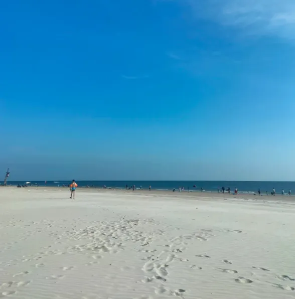 别以为“海滩”都是堆沙雕、唱歌跳舞那么简单,这里的沙,细得像面粉,阳光一洒,成片成片发亮。风一吹,潮味沁到衣服里,整个人都松快下来。水里水外,都是闲散。这滩海退了又涨,等一场日落,看落霞和渔船撞个正着,像从明信片里抽出来的片段。