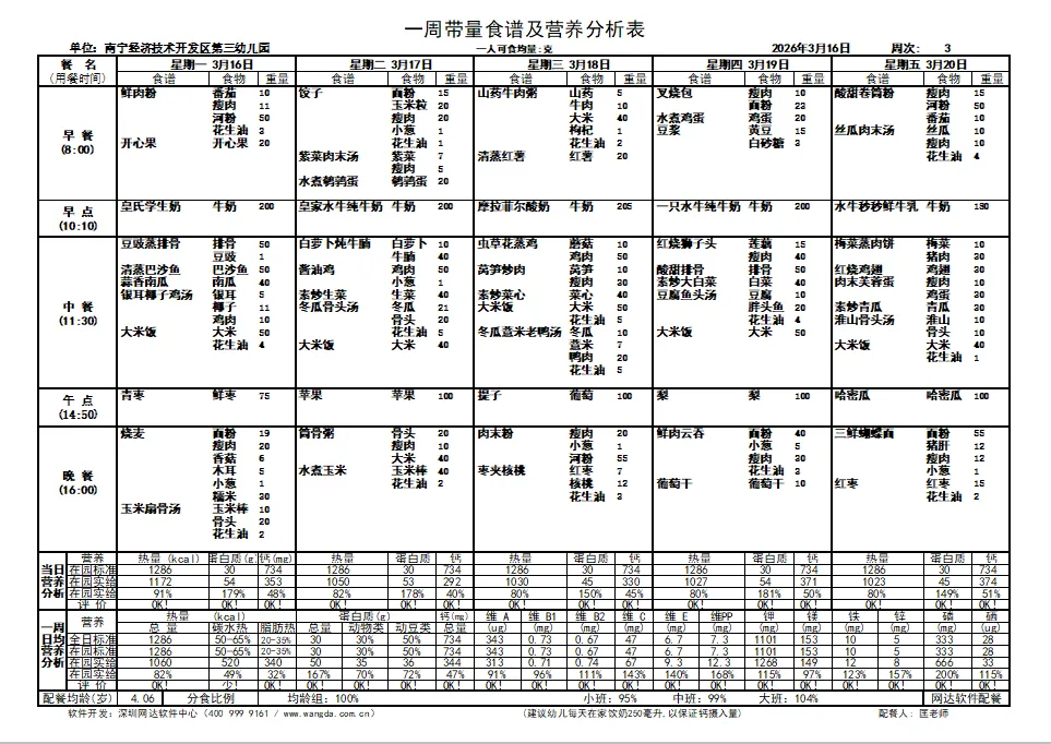 食谱:南宁经济技术开发区第三幼儿园保健室