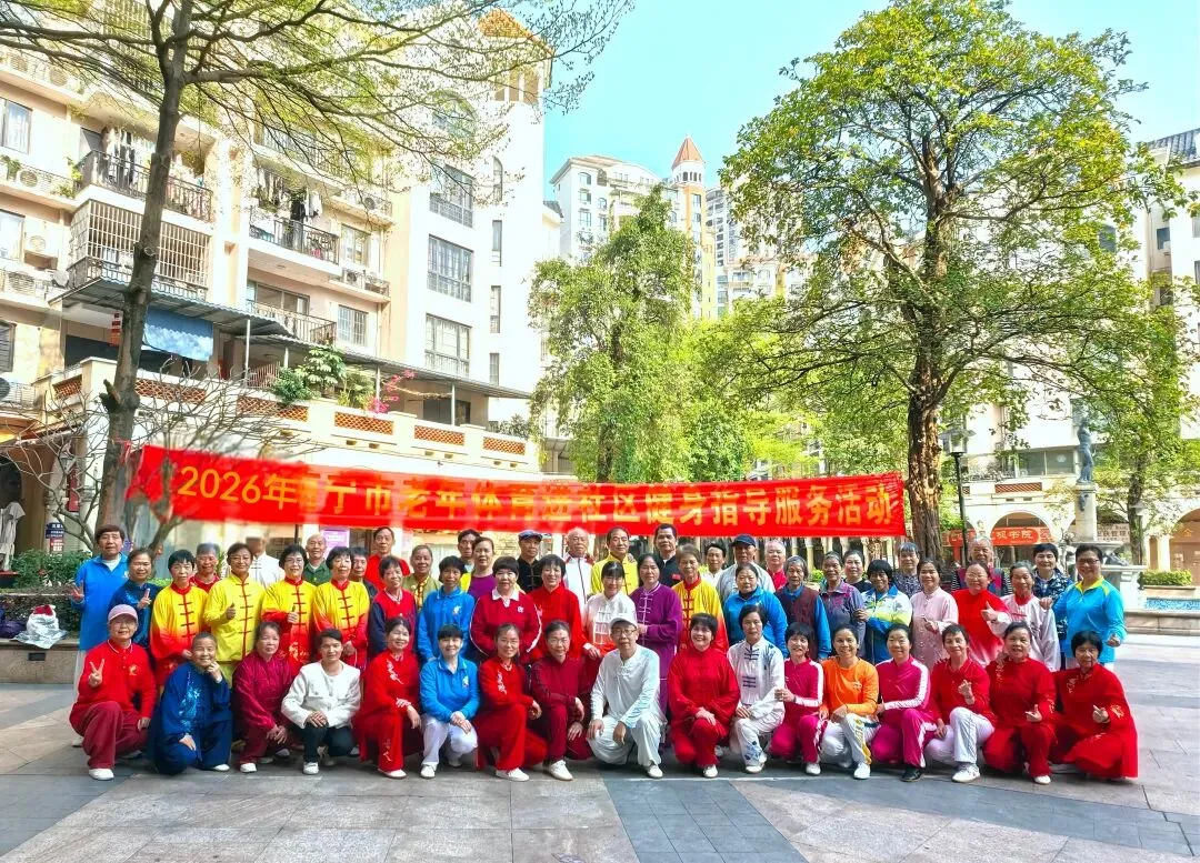为落实全民健身国家战略,推进老年体育服务下沉社区,健身气功马王堆导引术作为2026年南宁市老年人武术协会重点推广项目,在基层广泛普及。2026年3月10日至13日,南宁市江南区在普罗旺斯戛纳广场开展老年体育进社区健身指导服务活动,面向金阳社区、沛鸿社区、槎路社区、沛贤社区近60名会员居民,开展为期4天的马王堆导引术专项培训。
