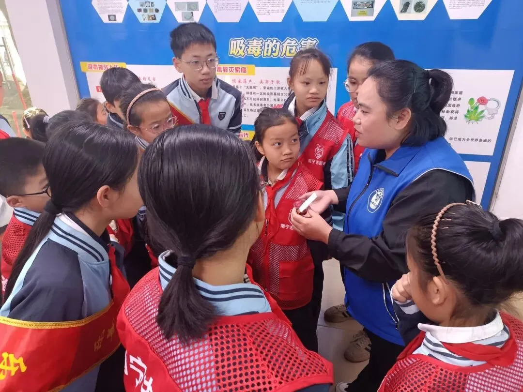 禁毒知识宣传:活动中期,志愿者们走进那马社区禁毒办,在工作人员的讲解下系统学习禁毒知识,了解毒品危害与防毒技巧。随后,大家化身 “小小禁毒宣传员”,向过往居民发放禁毒宣传册,用通俗易懂的语言普及防毒常识,传递“防毒从小做起,平安伴我成长”的正能量,让禁毒理念与雷锋精神一同深入人心。