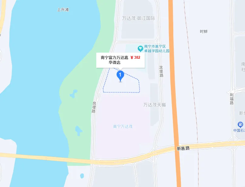 此次拍卖的南宁富力万达嘉华酒店,应该说位置非常好,属于一线江景酒店,就在邕江东岸,与南宁市方特东盟神画和青秀山风景区就一江之隔,有青山大桥相连,然后酒店东边是那安快速路,南边距离地铁站楞塘村(万达茂景区)不到2公里,而且酒店毗邻大型商业综合体万达茂