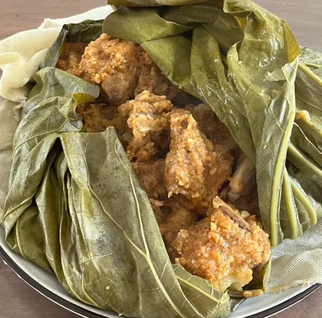 排骨切小段,先用蒜末、豆豉、少许酱油和胡椒抓匀,腌二十分钟。荷叶洗净铺底,把排骨和几片莲藕或芋头一起放上去,水开后大火蒸十五到二十分钟。揭盖那一下,荷香先出来,肉汁再跟上,热气一扑,人就饿得很认真。