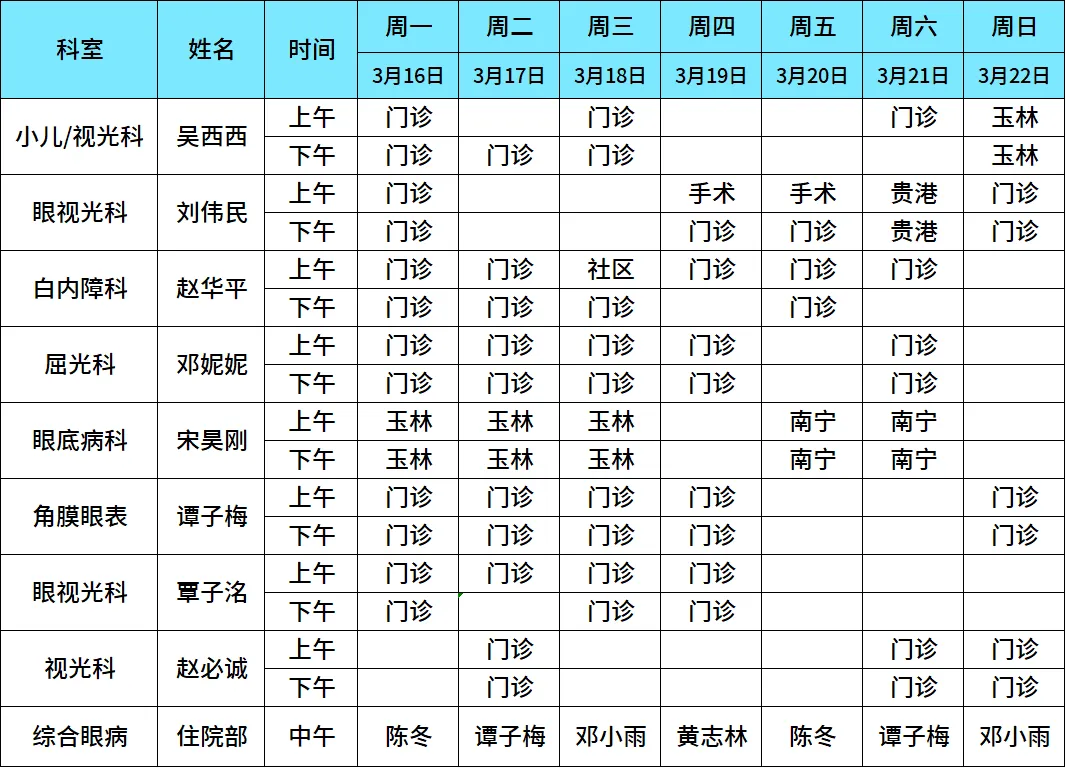 视光门诊8:00-18:00
