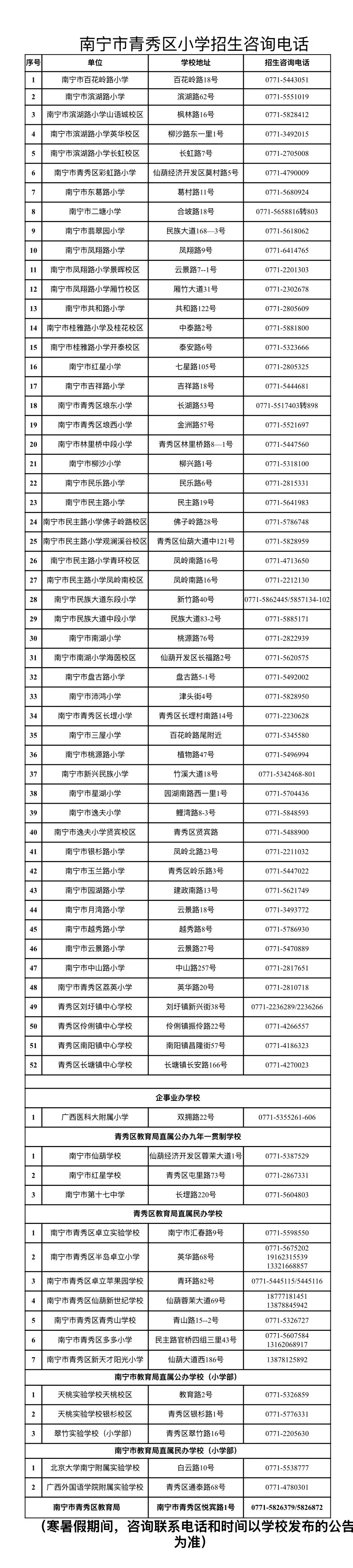 2.《居住证》(父母双方或其他法定监护人所持并由青秀区各派出所核发,登记地址在青秀辖区范围内);