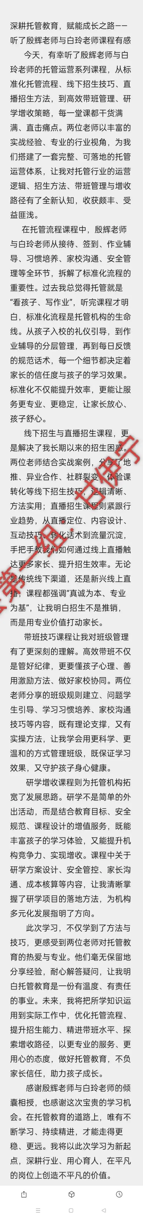 大会现场,晋级专家老师面对面授课,从七大维度、十大技巧入手,给校长们带来的不是一招半式,而是一整套可复制的系统:托管校长十大工作流程,让校长从“超级员工”变回真正的管理者;线下招生十大技巧、线上招生十大方法,帮校区精准获客;托管带班十大技巧,让老师轻松、家长满意;托管增收十大策略,不增加成本也能多赚几笔;品牌托管十大新模式,帮校区跳出价格战;打造托管团队十大秘诀,让校长不在校区,团队照样转。