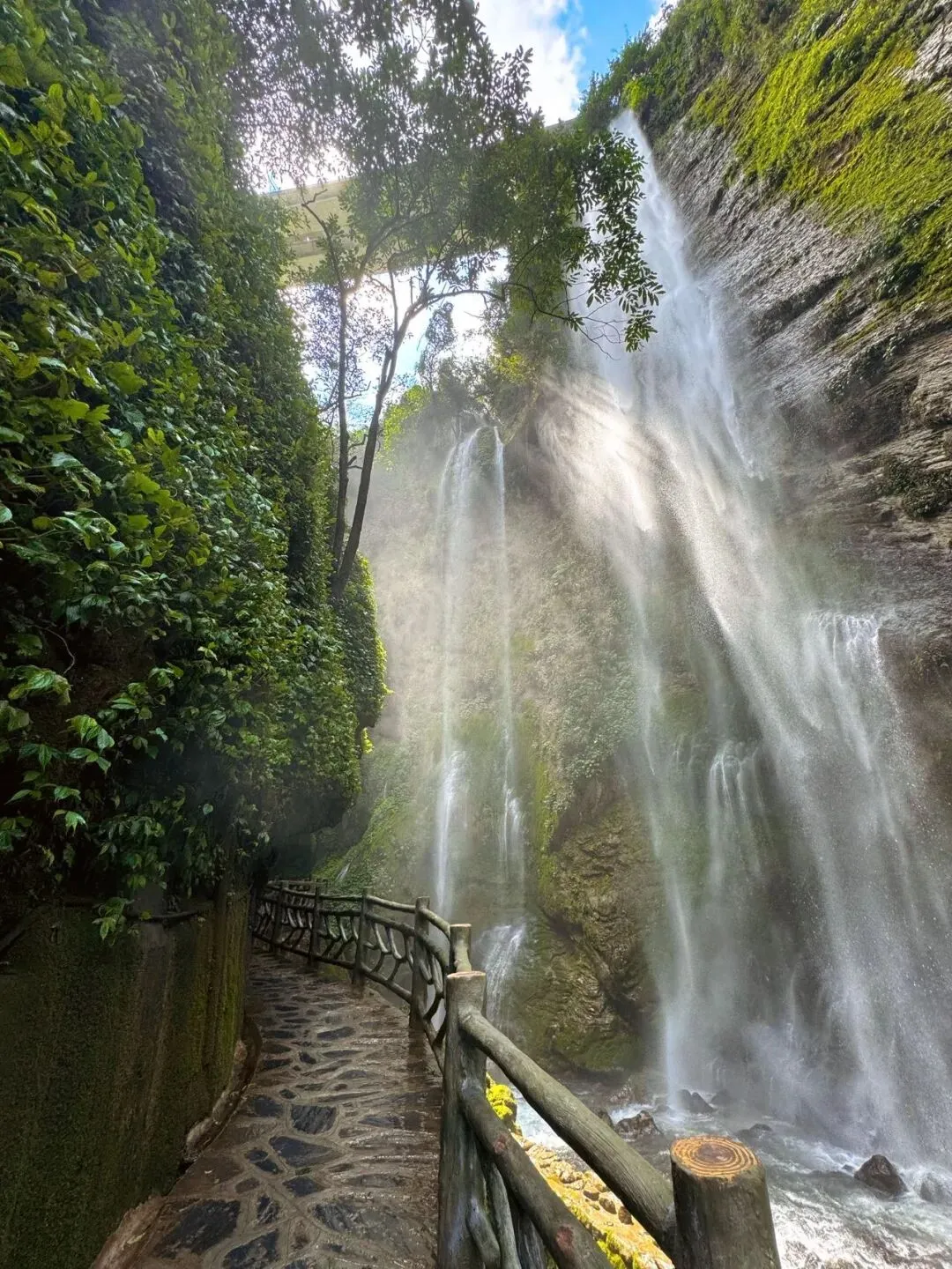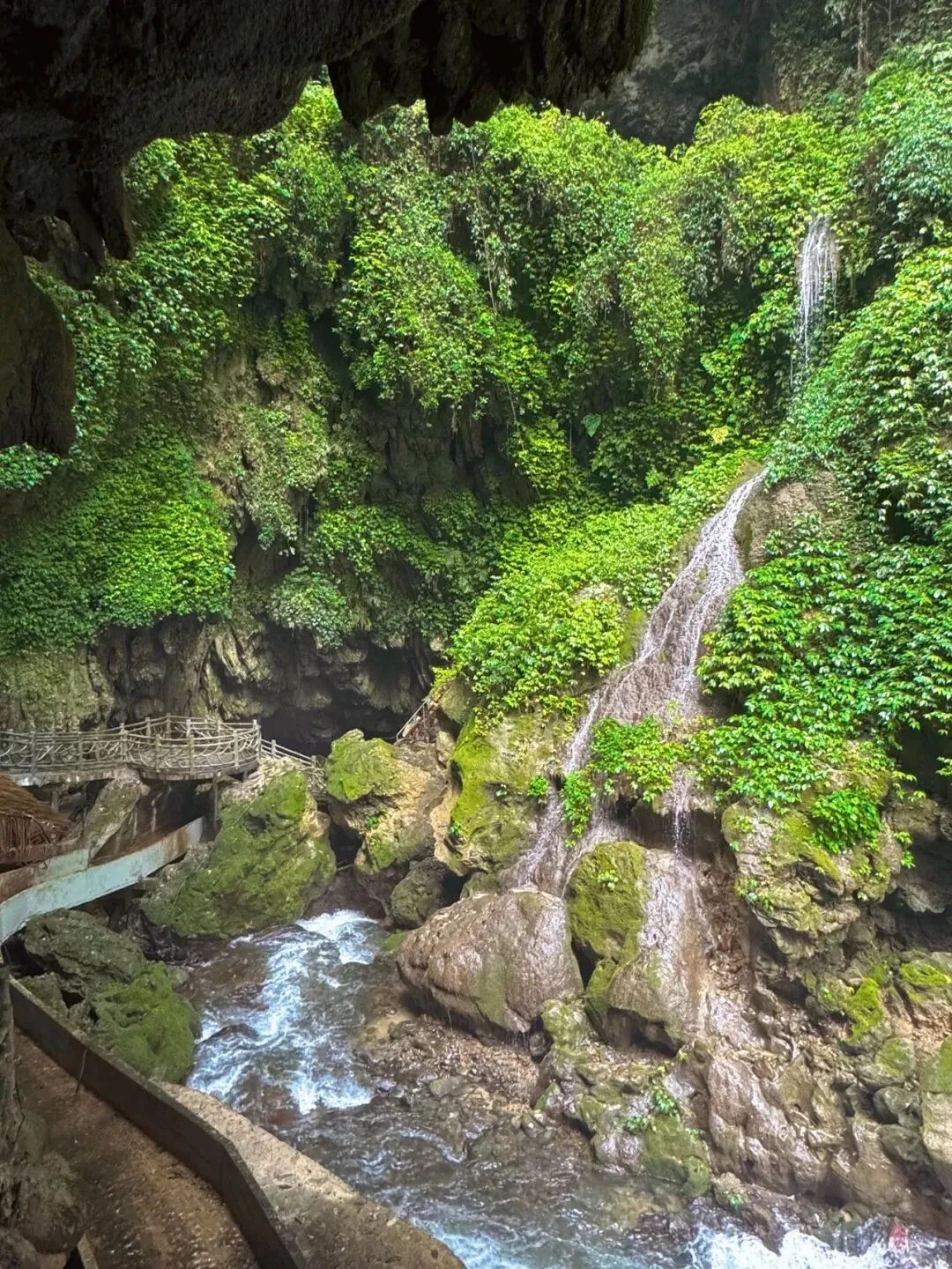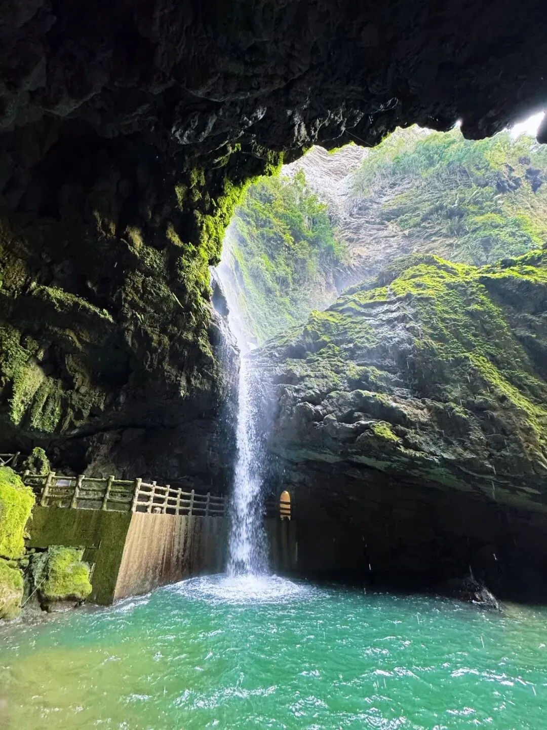 最神奇的是,瀑布背后还藏着一个水帘洞!沿着瀑布旁的步道往里走,就能进入这个“秘境中的秘境”。